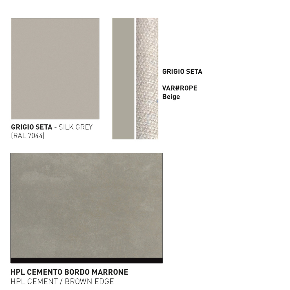 • graues Bein, VAR # ROPE dunkelgraues Gewebe, seidengraue HPL-Platte.