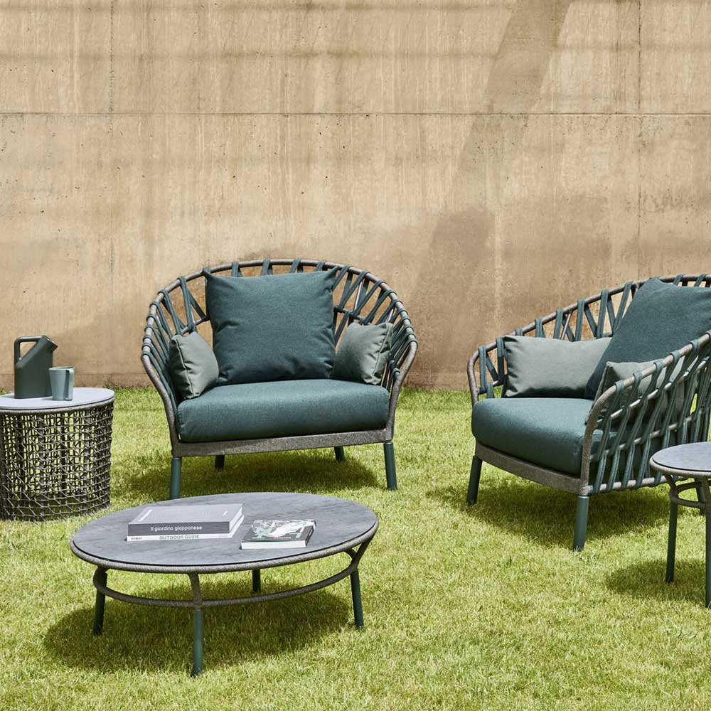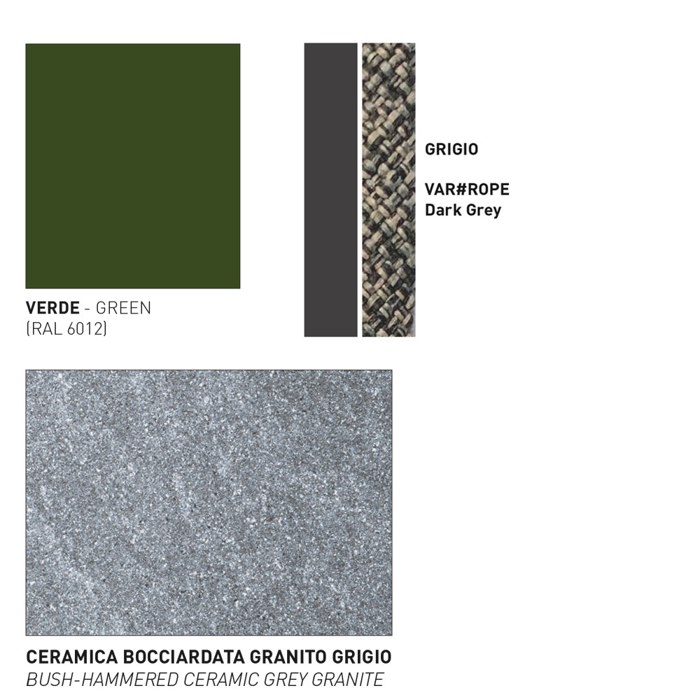 • grünes Bein, VAR # ROPE dunkelgraues Geflecht, gestockte Keramikplatte aus grauem Granit;