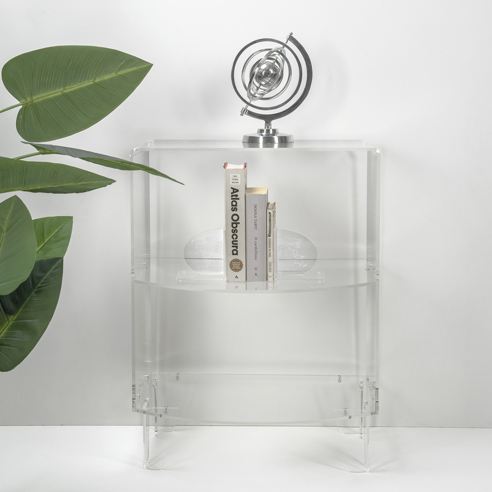Nachttisch oder Couchtisch im modernen Design aus transparentem Plexiglas made in Italy.
