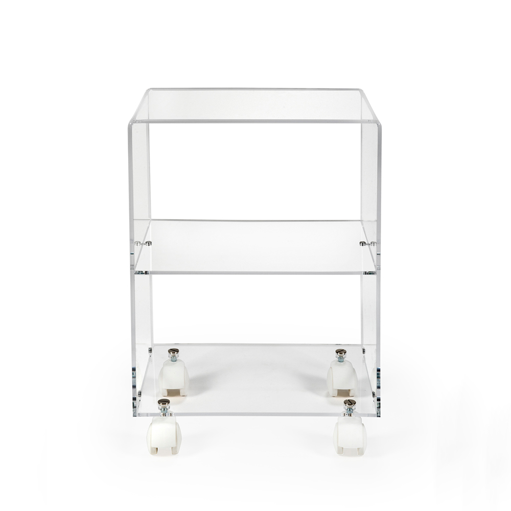 Vielseitiger Wagen, der die Essenz der Zweckmäßigkeit mit einem Hauch von transparentem Charme verkörpert. Hier handelt es sich um ein Stück, das nicht nur ein Einrichtungsaccessoire ist, sondern eine wahre Hommage an moderne Funktionalität.