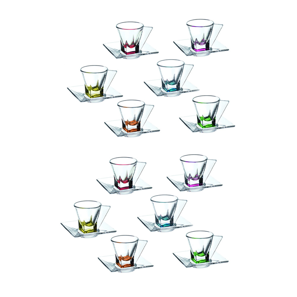 Kaffeetassen-Set aus transparentem oder farbigem Öko-Kristall, 12-teilig made in Italy.