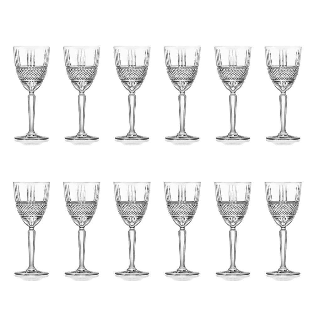 Set Wein- oder Wassergläser aus Öko-Kristall im Diamantschliff, 12-teilig made in Italy.