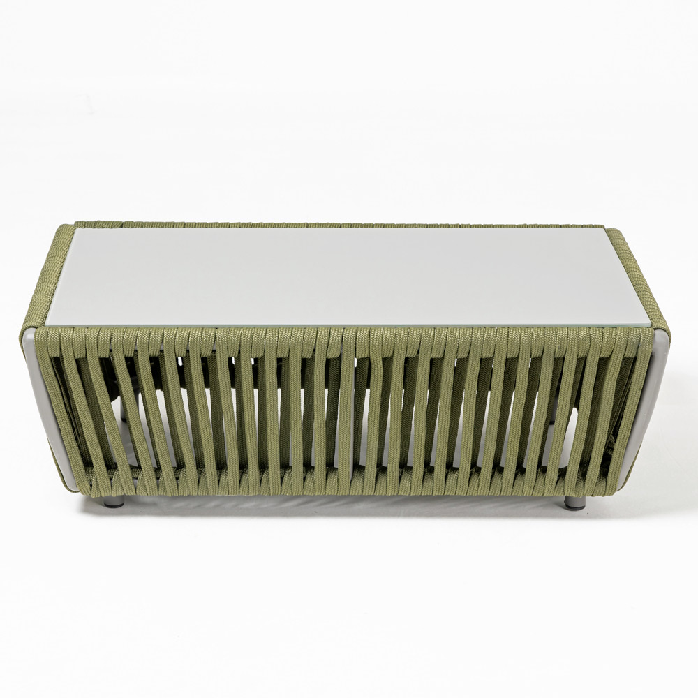 Dieser Couchtisch ist leicht zu handhaben und stabil, behält aber gleichzeitig ein sauberes und essentielles Design bei. Sein moderner Stil verleiht ihm einen starken Charakter und macht ihn perfekt für die Einrichtung von Außenbereichen sowohl im privaten als auch im gewerblichen Bereich.