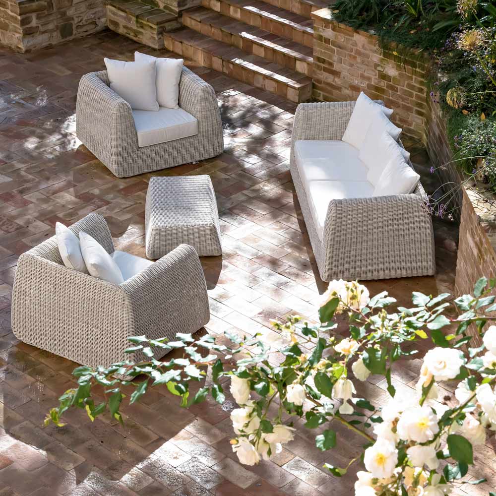 Das raffinierte Design, die sehr hohe Qualität der Materialien und seine geschwungenen Formen machen ihn perfekt für die Innen- und Außeneinrichtung. Dank der Verwendung spezieller hochwertiger Materialien ist dieser Tisch für den Außenbereich dank der Zertifizierung der gewebten Fasern unempfindlich gegenüber schlechtem Wetter und Temperaturschwankungen.