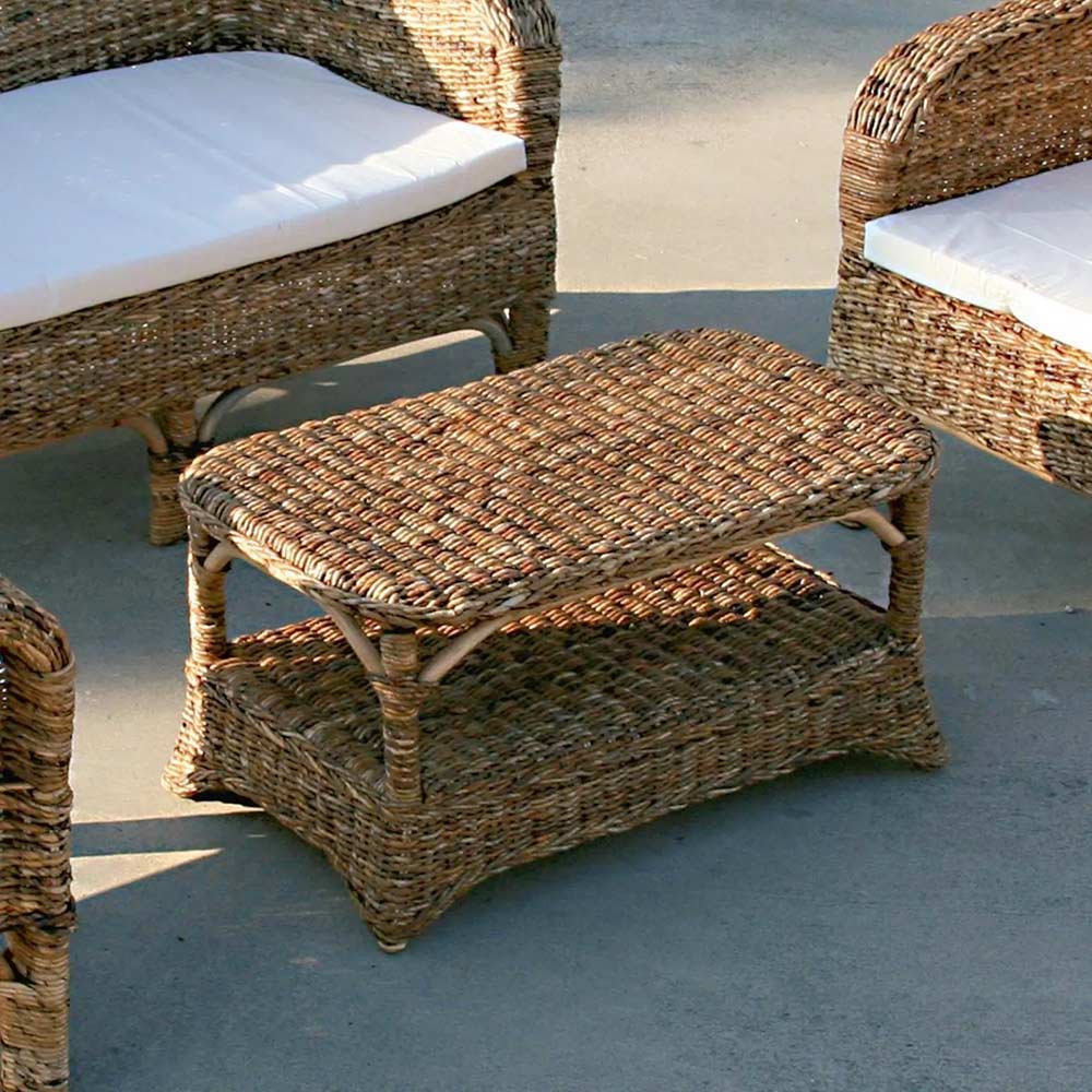 Dieser Couchtisch aus natürlichem Bananengeflecht ist ein exquisites Beispiel für funktionales Design . Die warme und einladende Optik des Geflechts verleiht jedem Außenbereich einen Hauch von raffinierter Rustikalität und schafft eine einladende und entspannende Atmosphäre. Die Robustheit der Struktur sorgt dafür, dass sie nicht nur schön aussieht, sondern auch langlebig und stabil ist und sich ideal für den täglichen Gebrauch eignet.