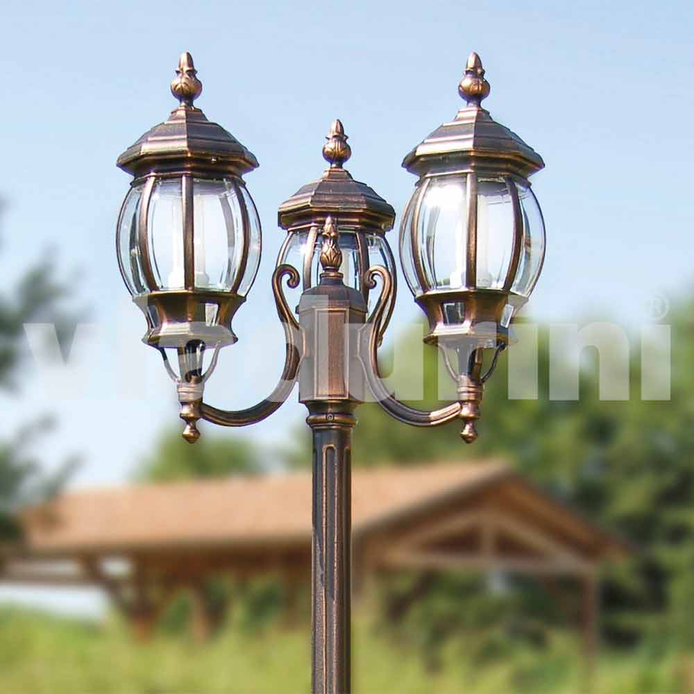 Gartenlampe aus Aluminiumdruckguss, hergestellt in Italien, Anika Anika ist eine dreiflammige Straßenlaterne für den Außenbereich, die in Italien aus hochwertigen Materialien handgefertigt wird: Struktur aus Aluminiumdruckguss und Diffusor aus transparentem Polycarbonat (garantiert eine optimale und stets homogene Lichtstreuung).