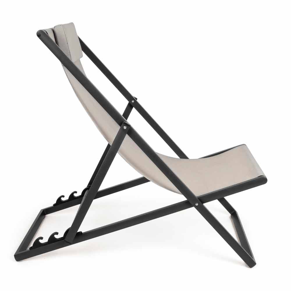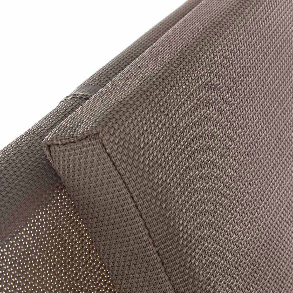 Aluminiumrahmen , pulverbeschichtet (Polyester). Sitz und Rückenlehne aus 2x1 Textilene (610G / M2). Verzinkte Stahlbeschläge. Drei Positionen.