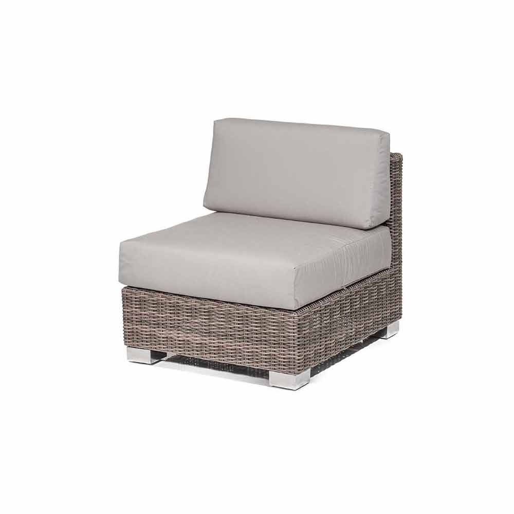 MIt seinem stabilen Alurahmen und der feinen Oberflächenverdelung des Polyrattan Geflechtes aus 6 mm Durchmesser liefert einen zeitgemäßen Touch. Ausserdem bietet die hochwertige PUR Schaumpolsterung eine exzellente Sitzeigenschaft. Die Polsterung wurde von einen Tempotest Bezug überzogen, der in unterschiedliche RAL Farben verfügbar ist.