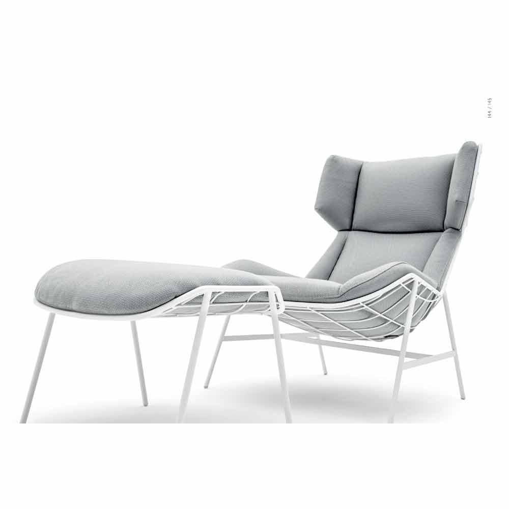 Summer Set ist eine fantastische Outdoor-Pouf/ Fußstütze mit einer tragenden Struktur aus pulverbeschichtetem Stahl in zwei verschiedenen Farben lackiert: weiss oder schwarz. Die Sitz- und Rückenkissen sind mit Stoff bezogen und mit Dryfeel-Gummi gepolstert.