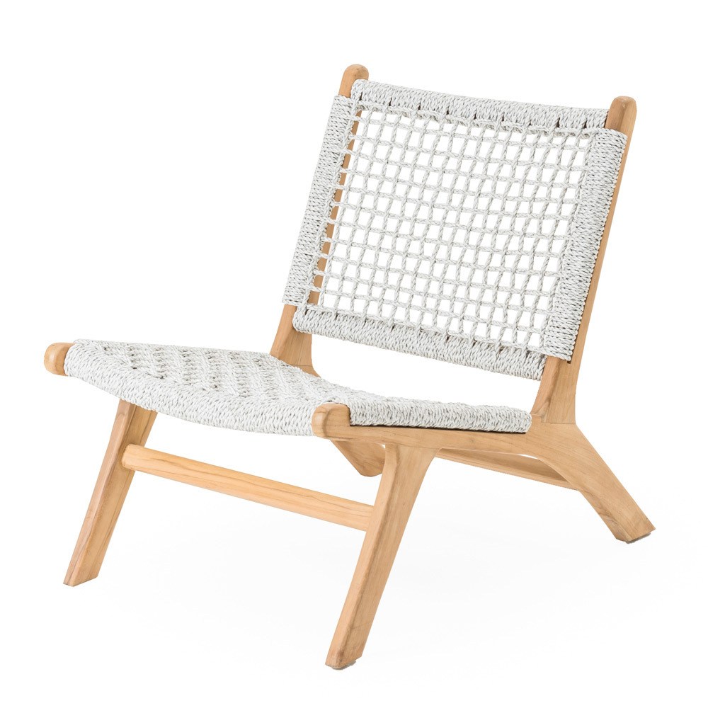 Dieser Sessel verbindet die Schönheit des Teakholzes mit der handwerklichen Weisheit des Webens.