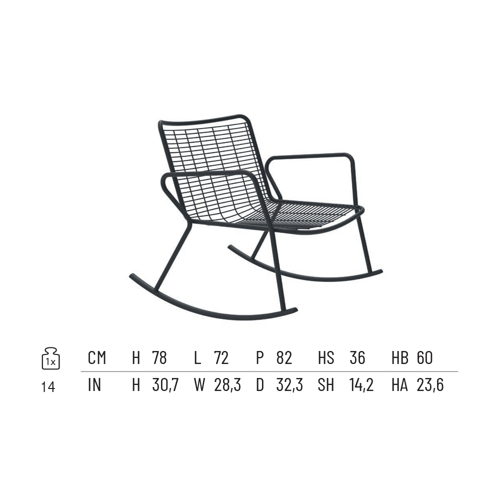 Schaukel-Chaiselongue für den Außenbereich, komplett in Italien hergestellt , mit pulverbeschichteter verzinkter Eisenstruktur und Armlehnen . Ein praktischer und moderner Sitz, dessen Ästhetik durch einen Pop-Akzent geprägt ist, der durch die verfügbaren schlichten und zarten Nuancen ausgeglichen wird. Schlicht, funktional und schön, zeichnet es sich durch harmonische Proportionen und eine breite und bequeme Sitzfläche aus und bietet so optimalen Komfort und trägt gleichzeitig dazu bei, jeden Außenbereich, sowohl im privaten als auch im gewerblichen Bereich, durch einen Hauch von elegantem und raffiniertem Stil einzurichten.