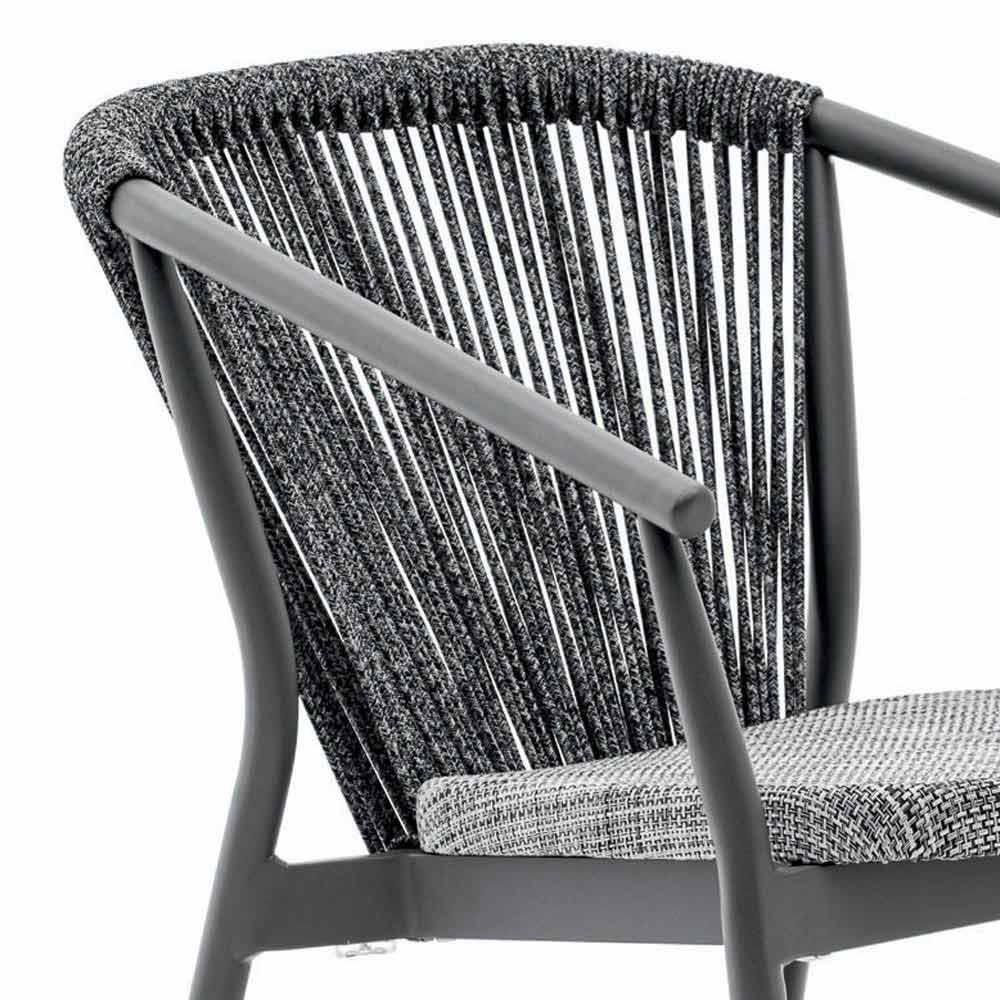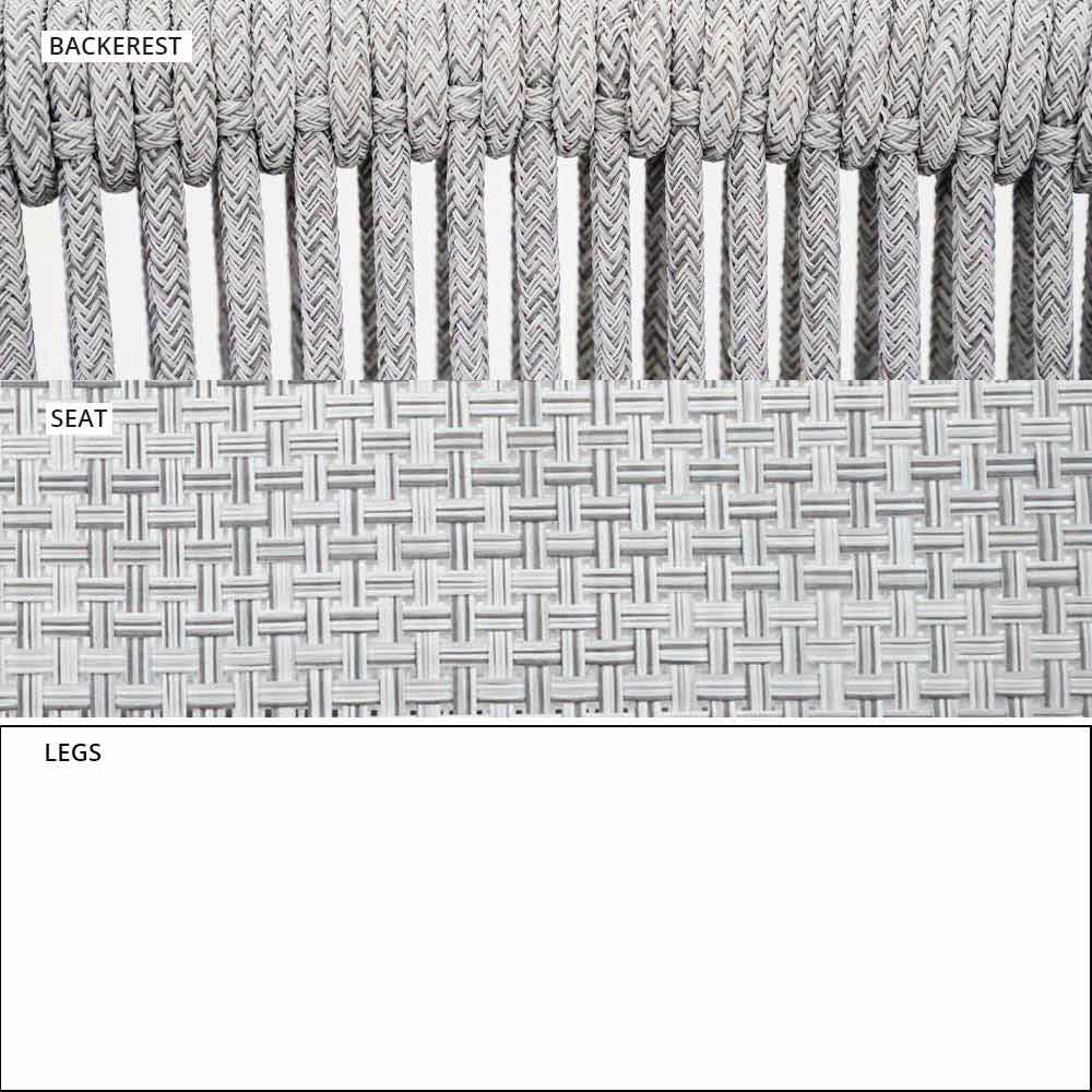 Smart wurde mit einer lackierten Aluminiumstruktur , einem Sitz aus technischem VAR # TEX-Stoff und einer Rückenlehne aus synthetischem VAR # TEX-Kabel (technischer Stoff aus PVC) hergestellt.