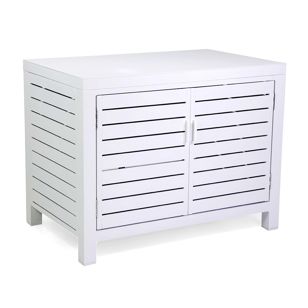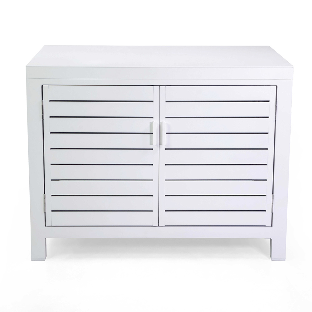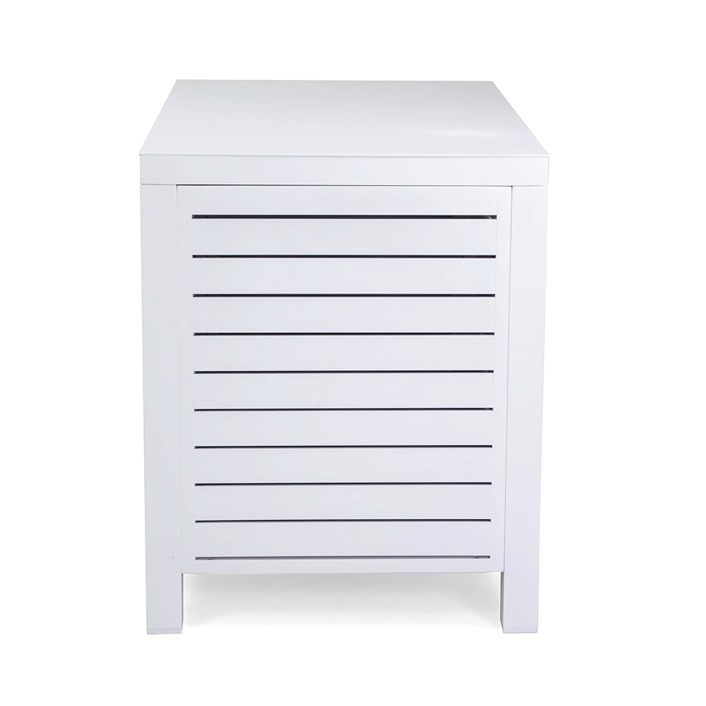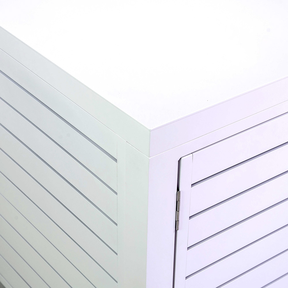 Verleihen Sie Ihrem Außenbereich einen Hauch von moderner Eleganz mit diesem raffinierten Aluminiumschrank, der sich perfekt in jede Außenumgebung einfügt. Das saubere Latten-Design erzeugt einen optisch ansprechenden Effekt und macht ihn zu einem funktionalen und dekorativen Mittelpunkt.