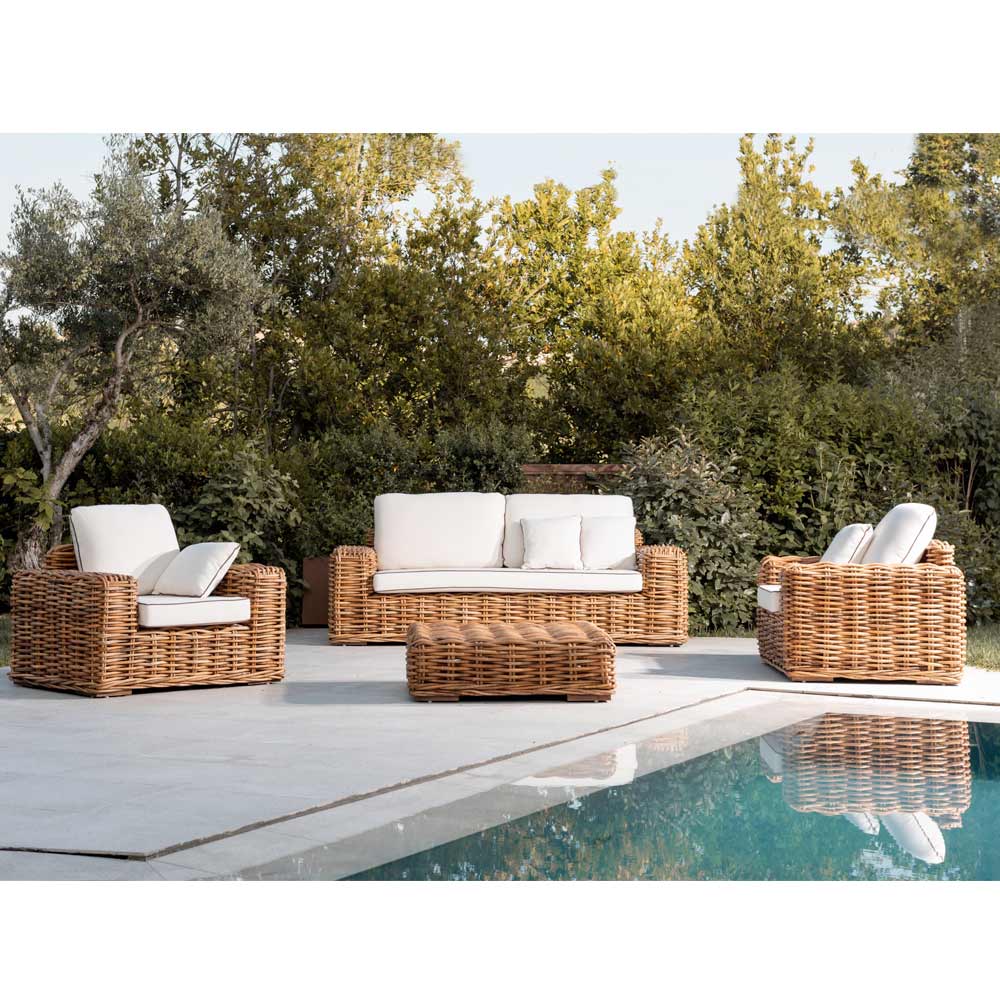 Outdoor-Sessel aus natürlichem Rattan mit mitgelieferten Kissen