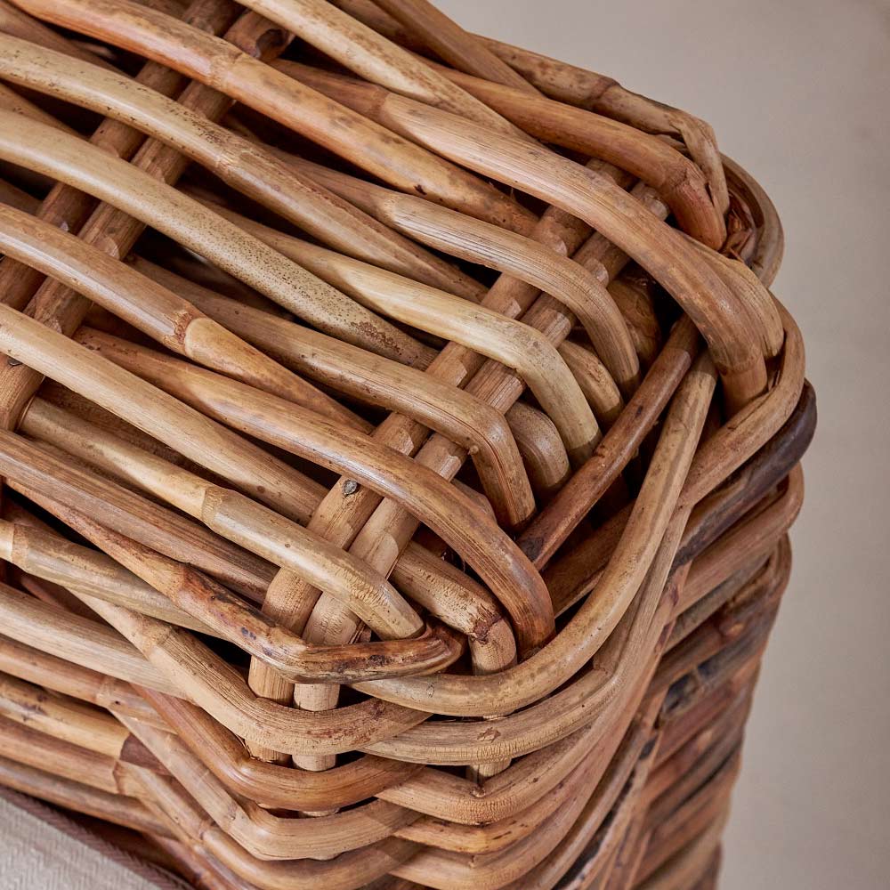 Pflege : Für die richtige Reinigung des natürlichen Rattans empfehlen wir die Verwendung von Mikrofasertüchern, neutralen Reinigungsmitteln und warmem Wasser. Wir empfehlen, den Kissenstoff ausschließlich in einer chemischen Reinigung oder von Hand und bei niedriger Temperatur zu waschen, um ein Schrumpfen zu vermeiden und seine Eigenschaften zu erhalten.