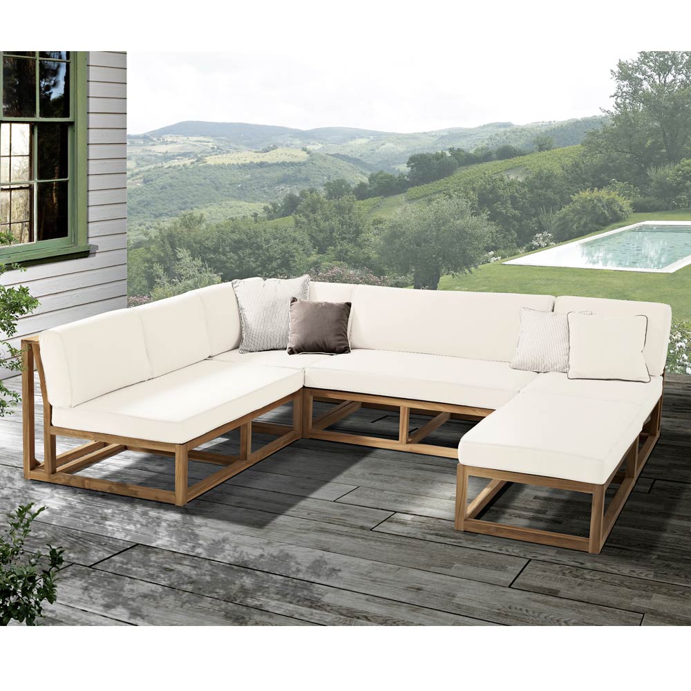 Ausgewähltes indonesisches Teakholz aus kontrollierten und nachhaltigen Wäldern (INDONESIANLEGALWOOD). Teakholz gilt als das wertvollste Holz, das für Außenmöbel zur Verfügung steht. Es ist extrem langlebig, stabil, witterungsbeständig, pilz-, parasiten- und insektenresistent. Es enthält einen hohen Anteil an natürlichen Ölen, die es widerstandsfähig machen und die Aufnahme von Feuchtigkeit begrenzen. Im Laufe der Zeit neigen Teakholzmöbel, die der Sonne, dem Regen, der Feuchtigkeit usw. ausgesetzt sind, im Allgemeinen dazu, eine silbergraue Farbe anzunehmen: Dies ist auf einen Oxidationsprozess der Oberfläche zurückzuführen, der das Holz auf natürliche Weise schützt. Dieser Prozess ist rein ästhetisch und beeinträchtigt weder die Struktur noch die Qualität des Holzes. Das Auftreten von Öl auf der Oberfläche von Teakholzmöbeln ist ein natürlicher Prozess: Das Öl kann in den ersten Monaten austreten, je nach der Umgebung, in der die Möbel stehen, mehr oder weniger stark. Die natürlichen Öle, die in Teakholz vorhanden sind, machen es zum besten Holz für Außenmöbel.