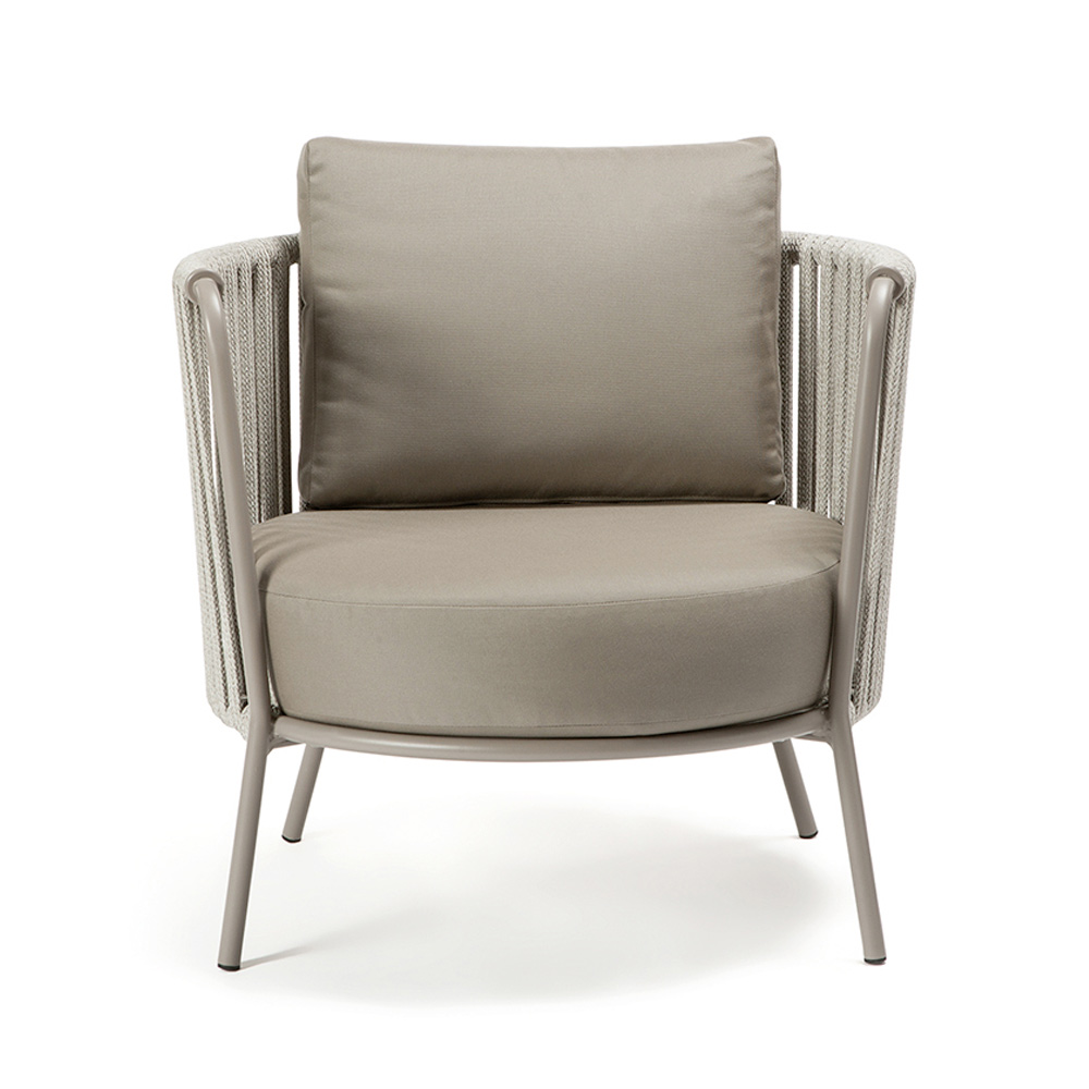 Outdoor-Sessel aus Stahl und Seil in verschiedenen Größen mit Kissen, Made in Italy.