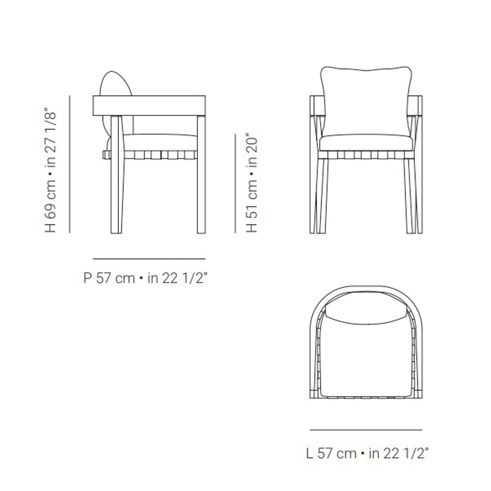 Outdoor-Sessel aus Teakholz mit Sitz und Rückenlehne aus gepolstertem Kissen. Made in Italy