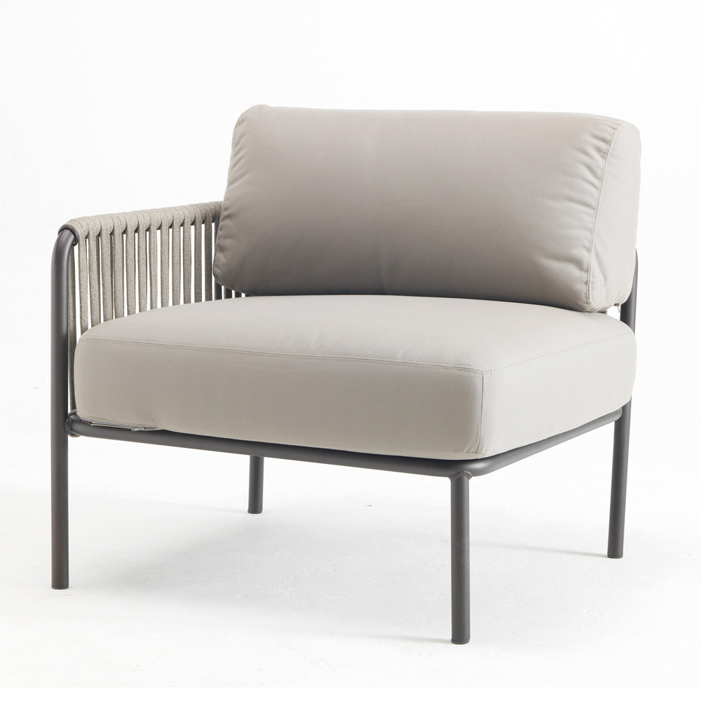 Hinweis : Sessel, Seil und Kissen sind in vielen Farben erhältlich. Die abnehmbare Armlehne kann rechts oder links angebracht werden.