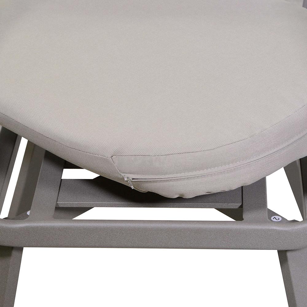 Der robuste Aluminiumrahmen sorgt für Haltbarkeit und Witterungsbeständigkeit, während seine neutrale Farbe und elegante Form sich perfekt in jede Außeneinrichtung einfügt. Ideal für alle, die kompromisslosen Stil und dauerhaften Komfort suchen.
