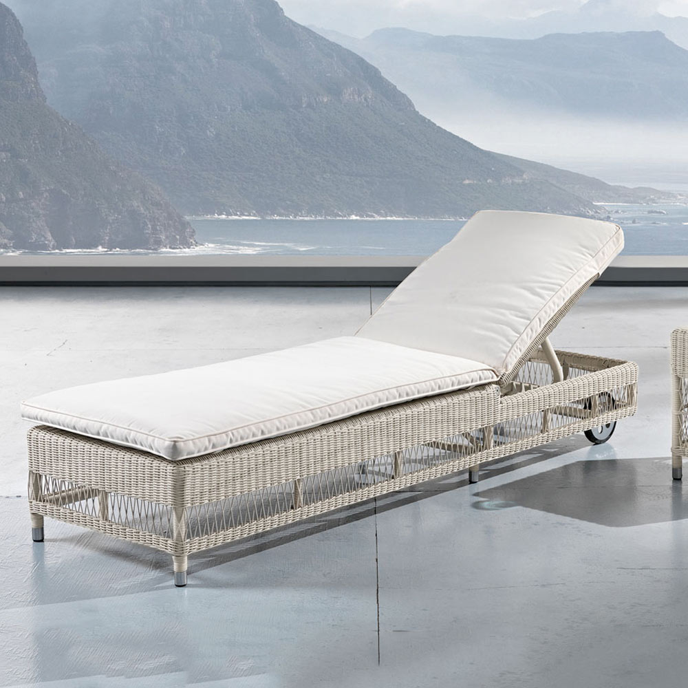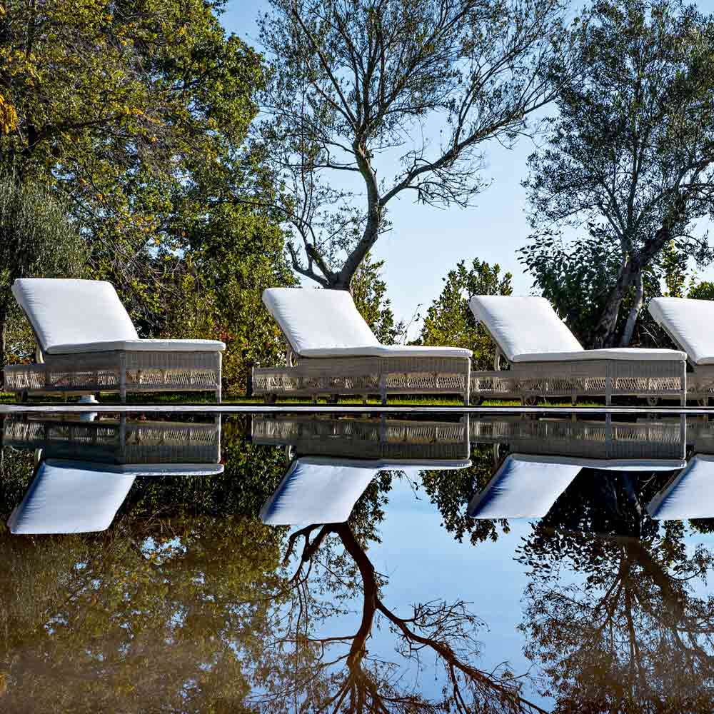 Der Geflechtstil ist raffiniert und zart und zusammen mit der sehr hohen Qualität der Materialien und seinen entschiedenen Formen machen diese Sonnenliege perfekt für die Einrichtung von Innen- und Außenbereichen, sowohl im privaten als auch im gewerblichen Bereich wie Terrassen, Veranden, Gärten, aber sie finden auch einen perfekten Platz am Pool.