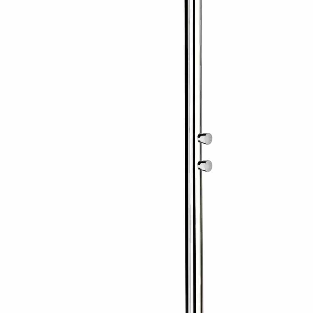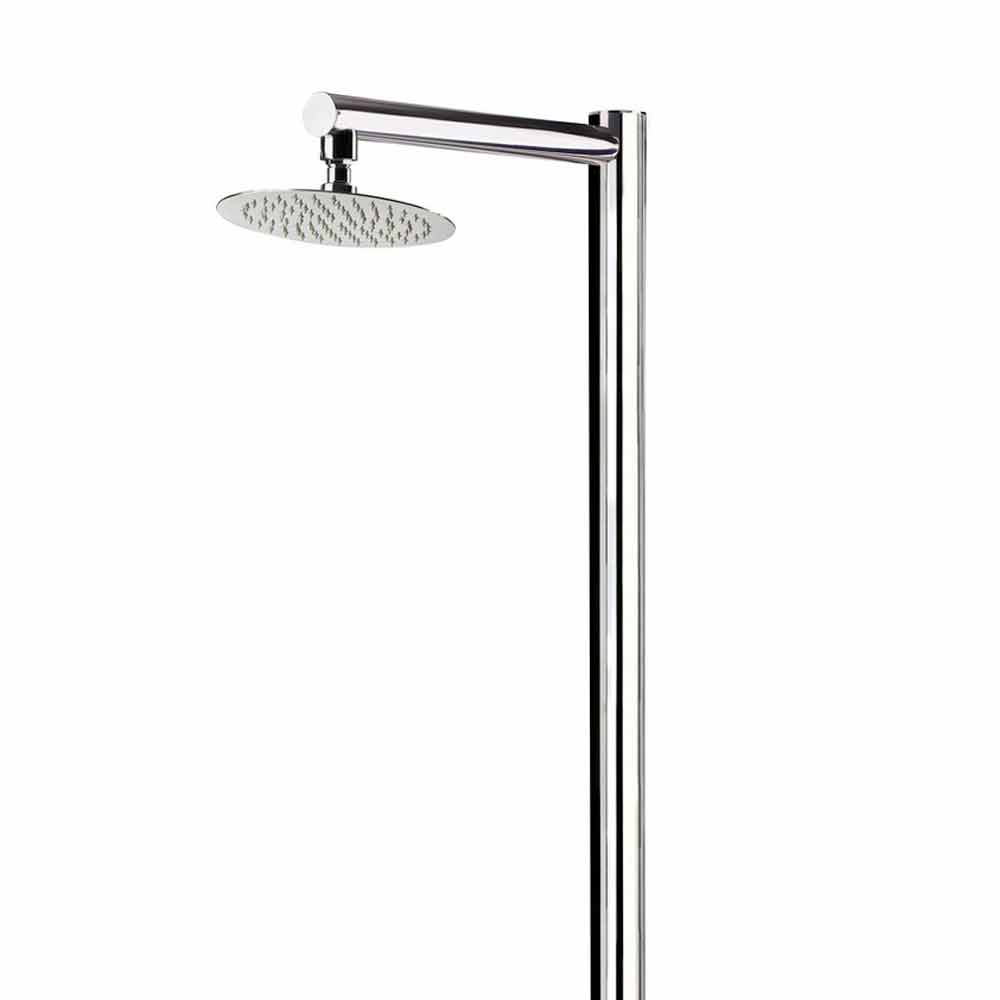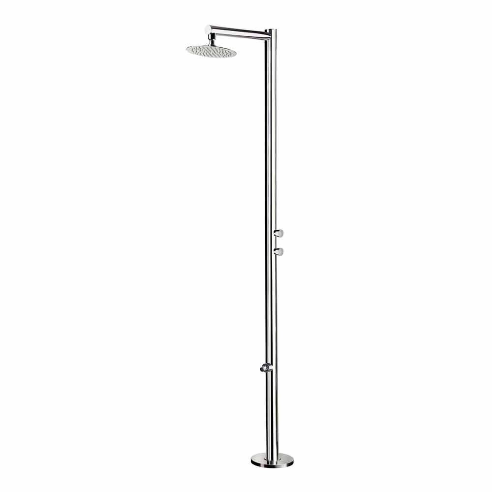 Außendusche aus Stahl mit Fußdusche und zeitgesteuerten Wasserhähnen, hergestellt in Italien.