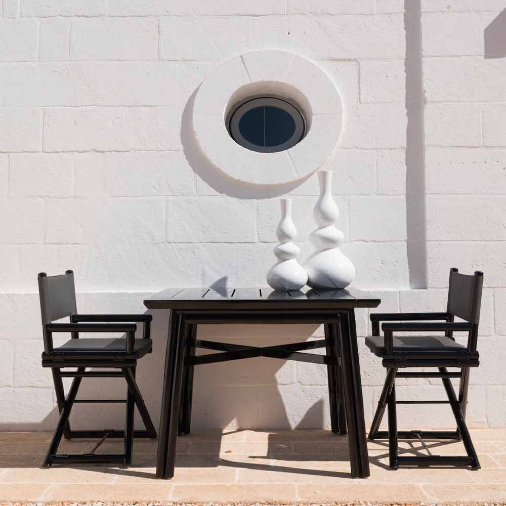 Klappbarer Regiestuhl für den Außenbereich aus Natur- oder Schwarzholz, Luxus made in Italy.