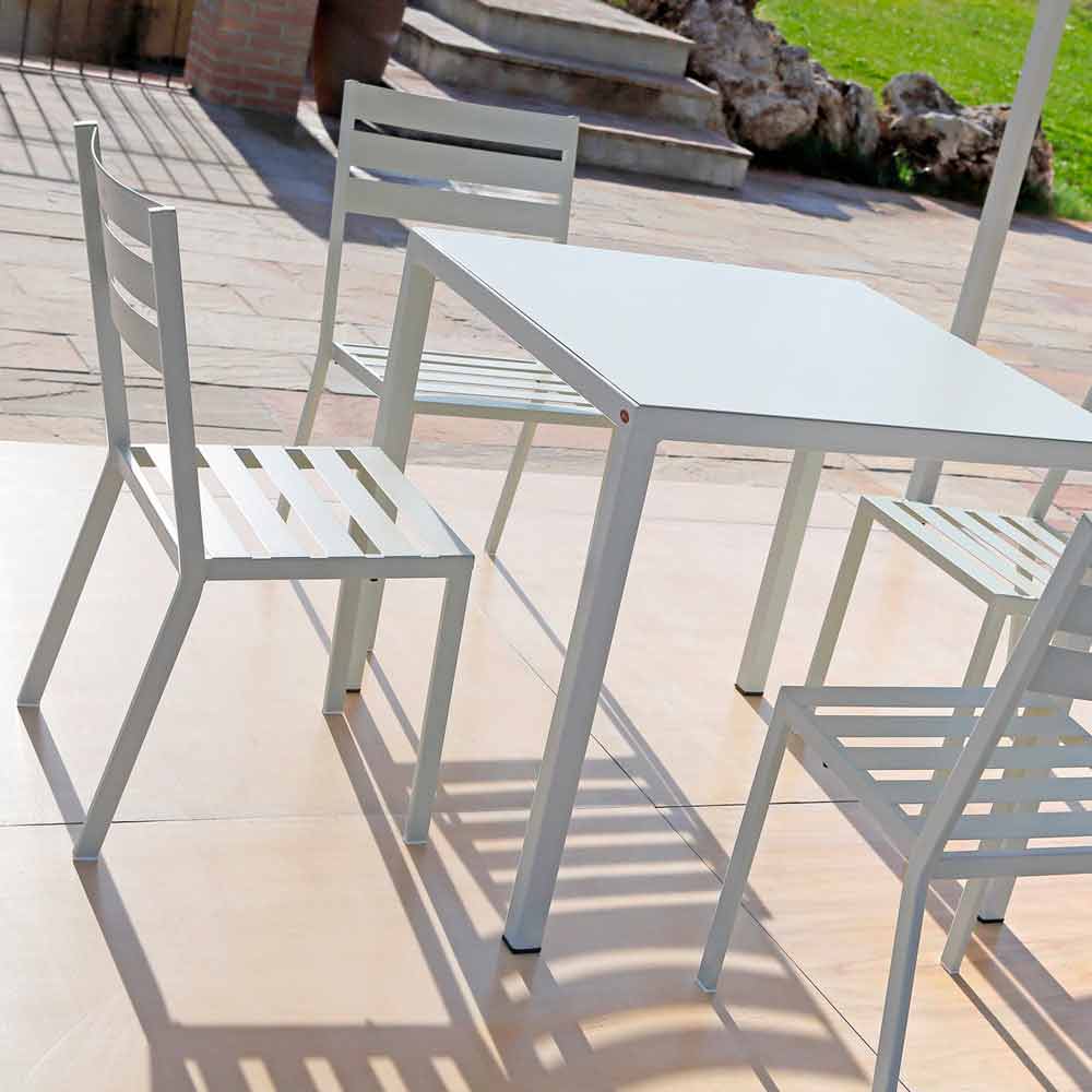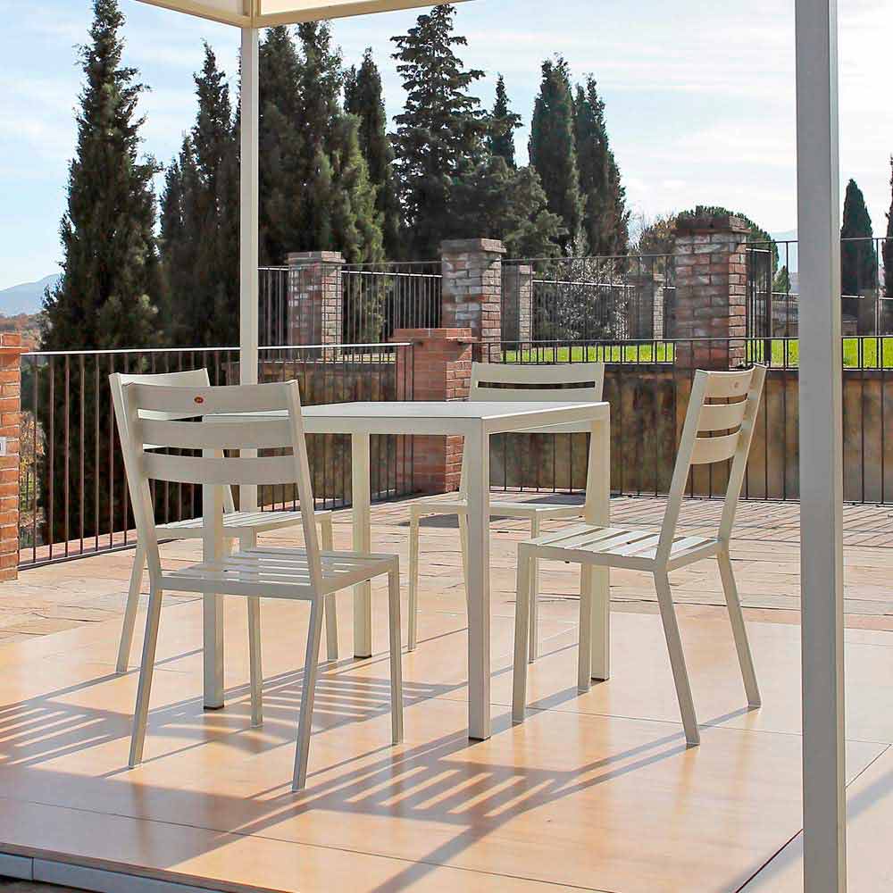 Handgefertigter Outdoor-Stuhl aus perlweiß lackiertem Eisen Made in Italy, 4 Stück.