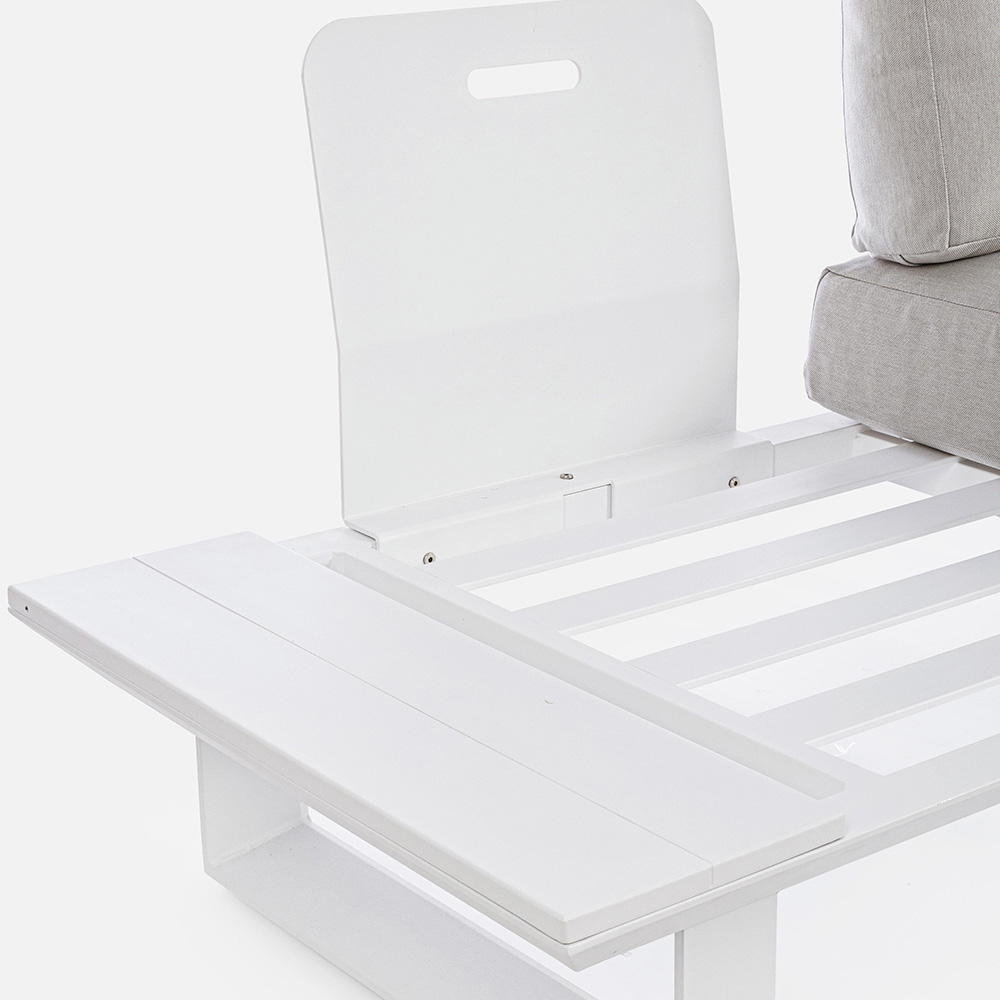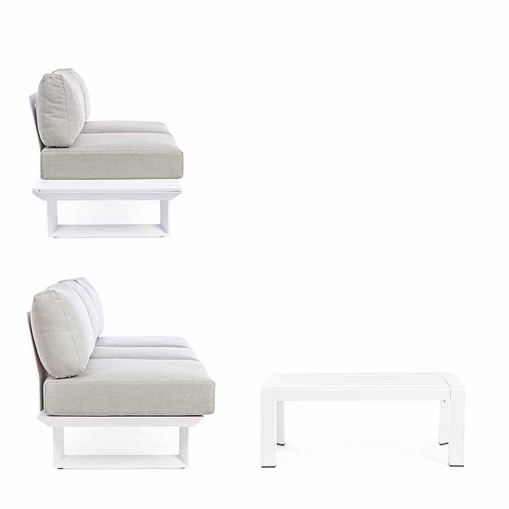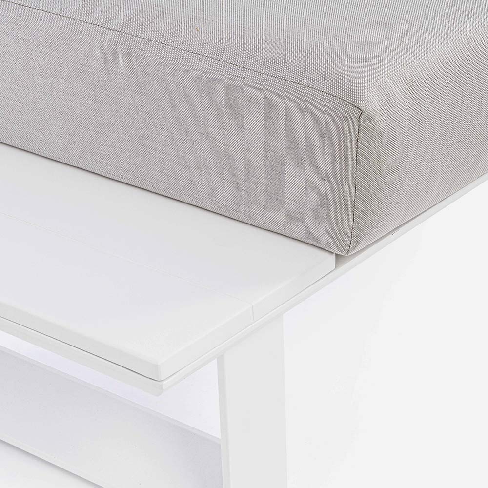 Pulverbeschichtete Aluminiumstruktur (Polyester). Abnehmbare Kissen mit Olefingewebe (100% Polypropylen). Beine und Rücken zusammenzubauen.