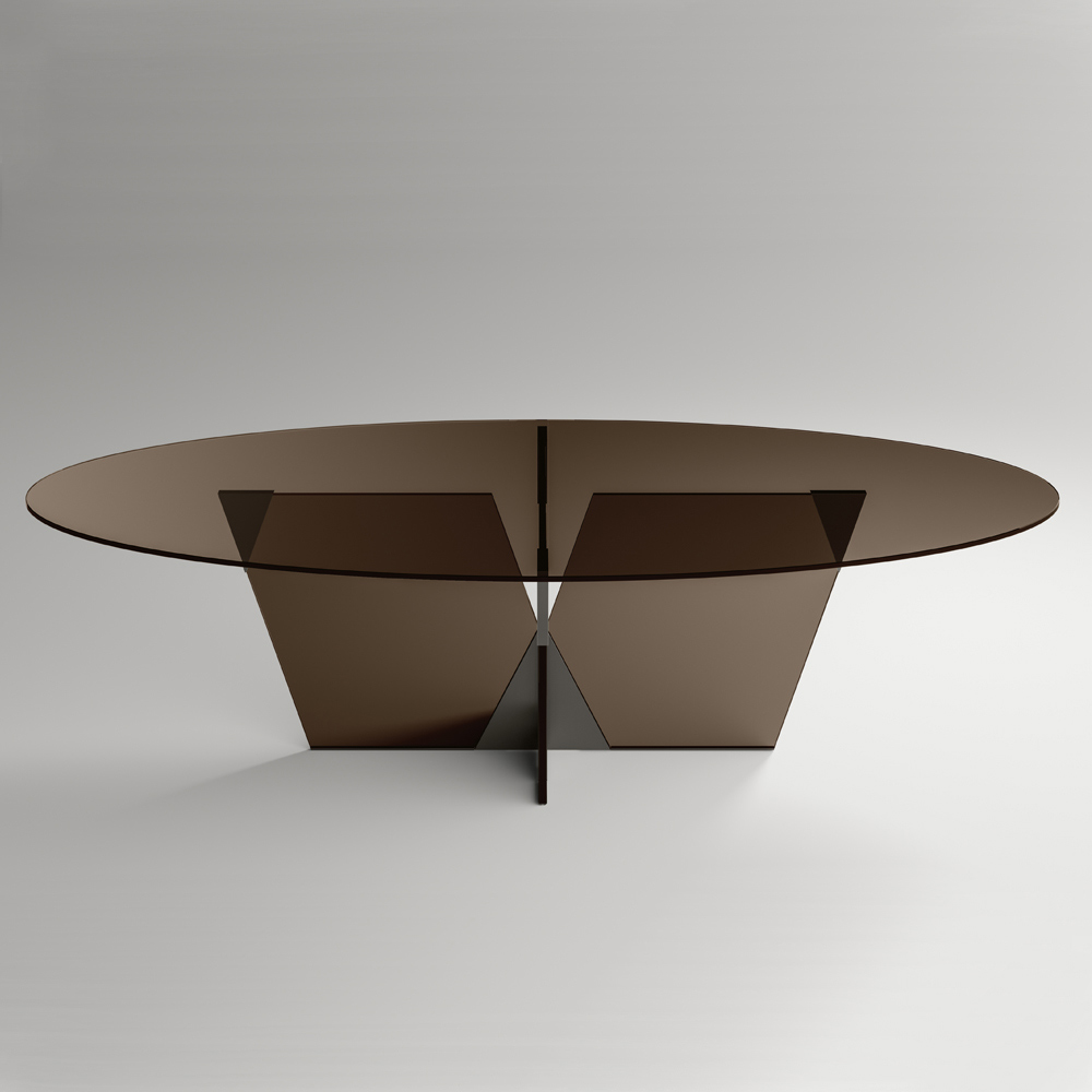 Esstisch mit ovaler Platte und hochwertigem Made in Italy Glasfuß.