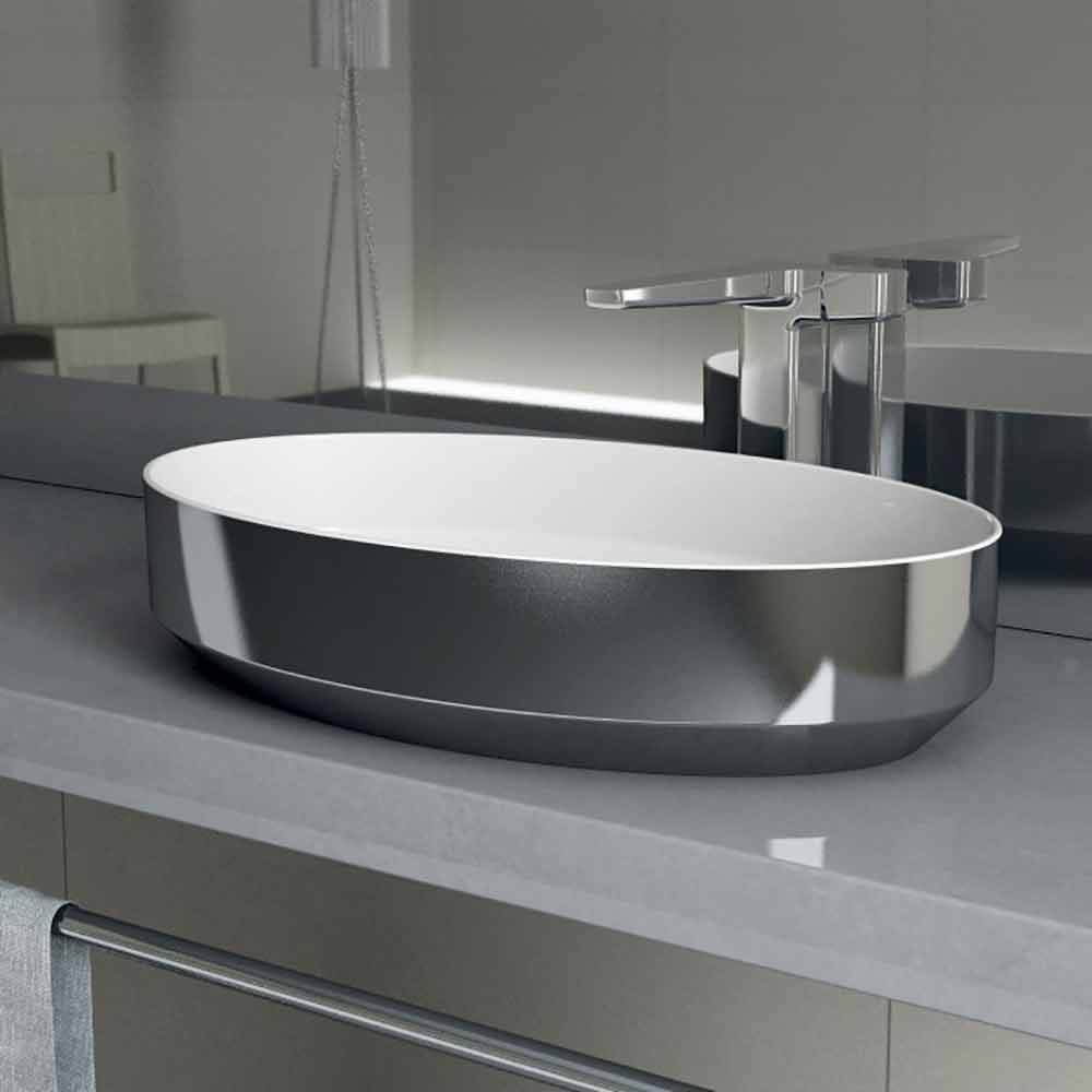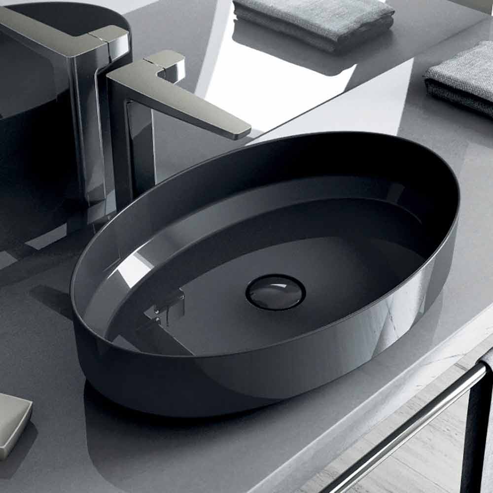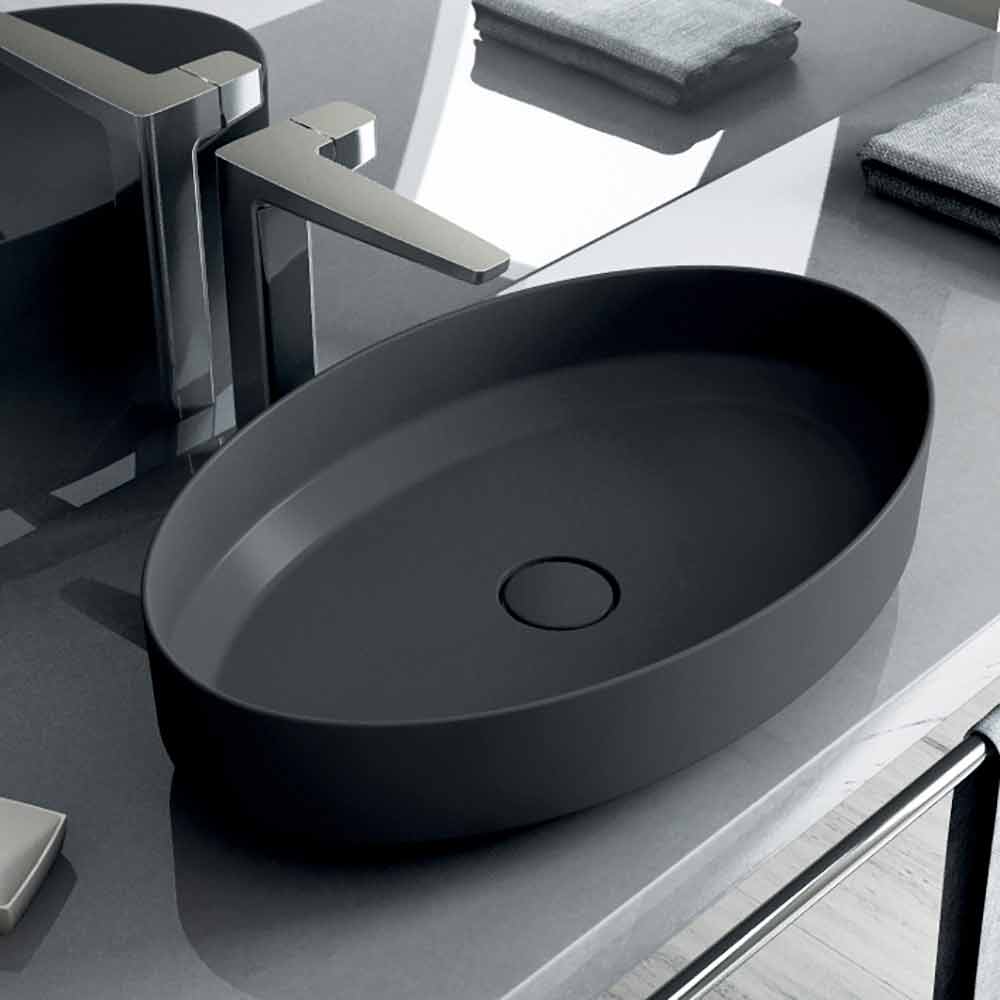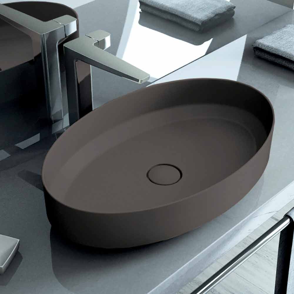 Yoel ist ein außergewöhnliches ovales Aufsatzwaschbecken, das in Italien in Keramik handgefertigt wird und sich durch ein elegantes und vielseitiges Design auszeichnet, das sich perfekt für jede Art von Badezimmer eignet.