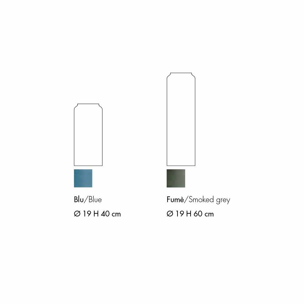 Raffinierte Komposition aus 2 dekorativen Indoor-Vasen aus geräuchertem und blauem Glas. Aus der Begegnung zwischen essentiellen Linien und Formen und vielseitigen und nüchternen Farbtönen entsteht diese Einrichtungslösung, ideal für diejenigen, die es lieben, ihre Räume mit dekorativen Elementen voller Persönlichkeit und Charakter zu bereichern. Die verwendeten Farben erinnern an die typischen Farbtöne des venezianischen Glases und verwandeln eine schlichte Vase in wahre Modernität, die sich leicht mit den verschiedenen Einrichtungsstilen kombinieren lässt.