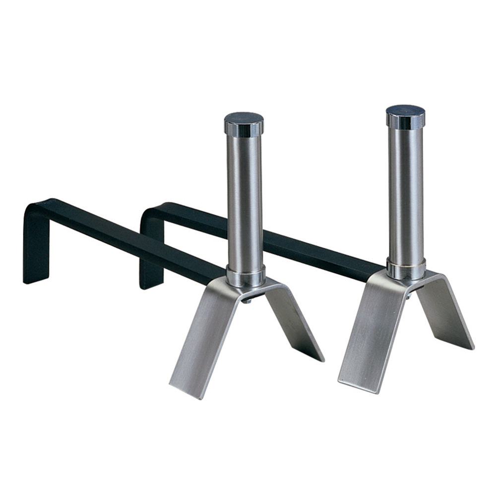 Diese robusten und dennoch eleganten Feuerböcke sind so konzipiert, dass sie der hohen Hitze und dem Gewicht dichterer Hölzer standhalten und ein sicheres und zuverlässiges Heizerlebnis gewährleisten. Sie sind die perfekte Wahl für alle, die eine einladende Atmosphäre wünschen, ohne auf zeitgenössische Ästhetik zu verzichten. Ihr Aussehen und der gebürstete Stahl fügen sich harmonisch in jede Art von Kamineinsatz ein und verleihen der traditionellen knisternden Flamme einen Hauch von Glanz und Modernität.