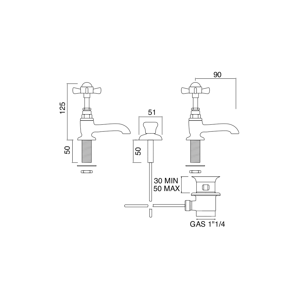Ein Paar einzelner Waschtischarmaturen mit Abfluss.