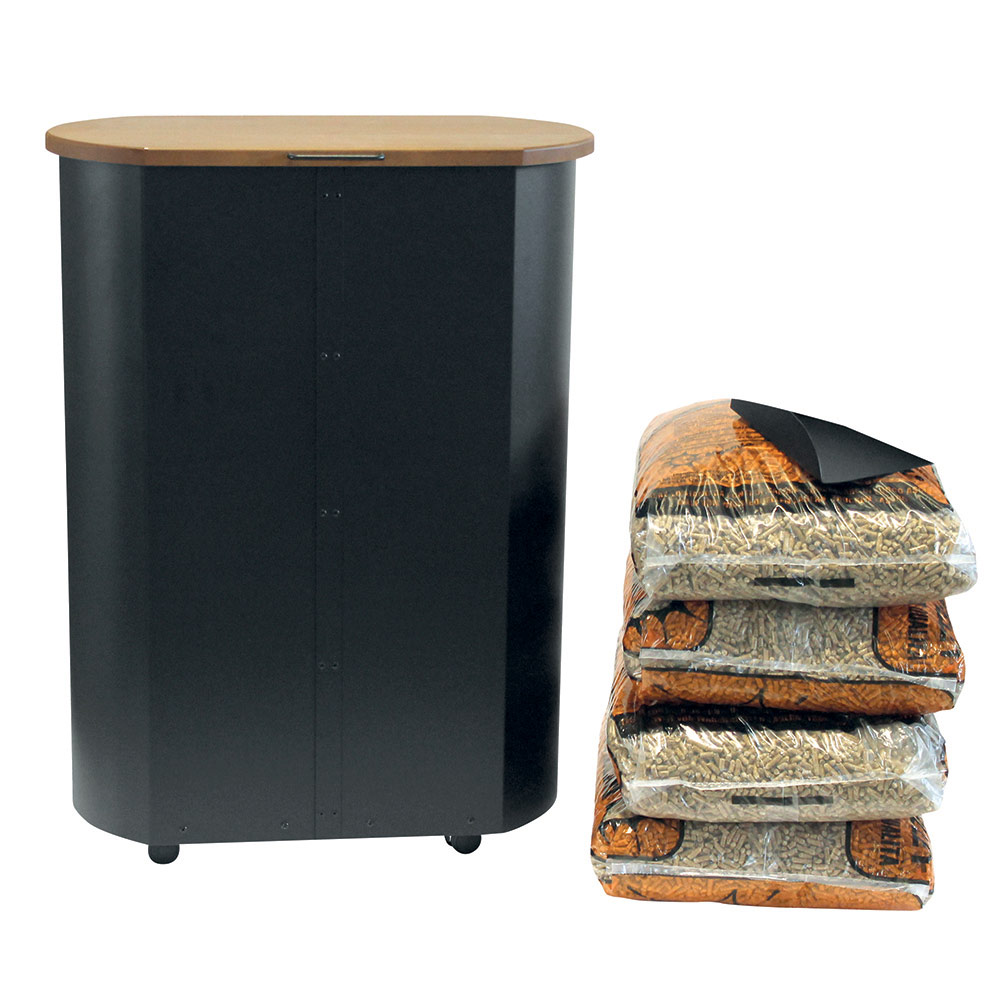 An der Unterseite sorgen diskrete, aber stabile Räder für eine einfache Bewegung, sodass Sie den Pelletbehälter mit minimalem Kraftaufwand vom Aufbewahrungsort zum Kamin bewegen können. Dieser Pelletbehälter ist nicht nur ein funktionales Objekt , sondern auch ein Möbelstück, das Aufmerksamkeit erregt und die Ästhetik Ihres Wohnraums aufwertet. Mit seinem großzügigen Fassungsvermögen und der auffälligen Silhouette ist es die ideale Ergänzung für alle, die Komfort suchen, ohne auf Stil zu verzichten.