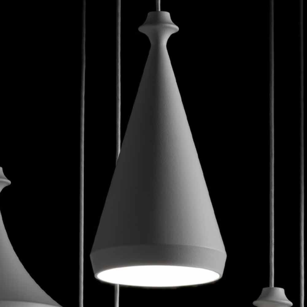 < Designer Keramik Pendelleuchte I Lustri von Aldo Bernardi . ILustri ist in verschiedenen Ausführungen und mit Fassung für Standardglühbirne E27 oder mit LED-Licht erhältlich.