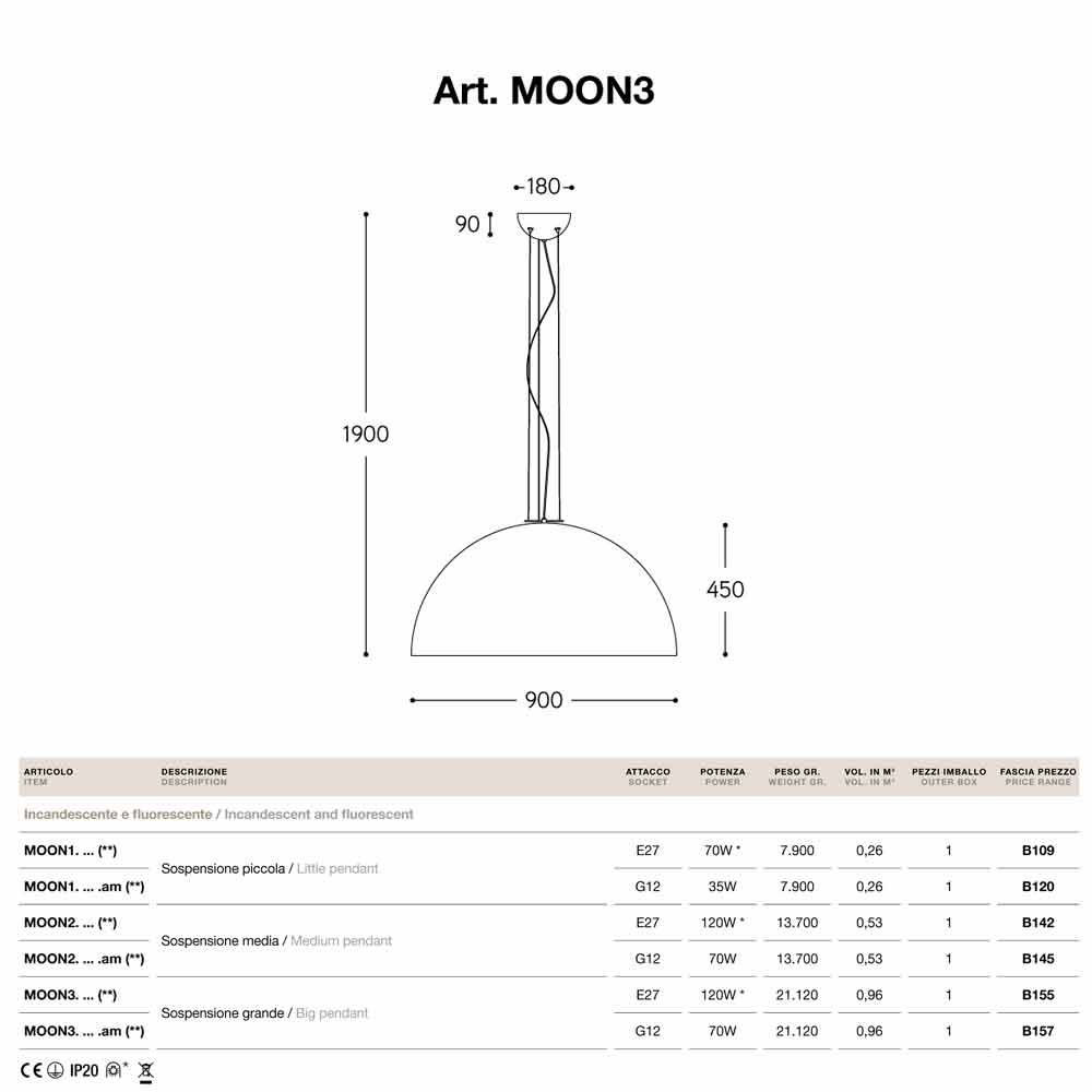 Dieser Artikel kann nicht in den USA verkauft werden. Moderne Design Pendelleuchte Moonlight aus Stahl von Aldo Bernardi, IP 20.