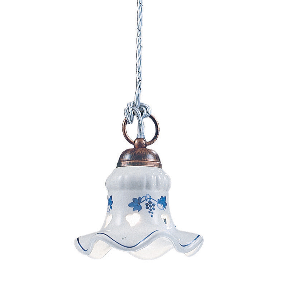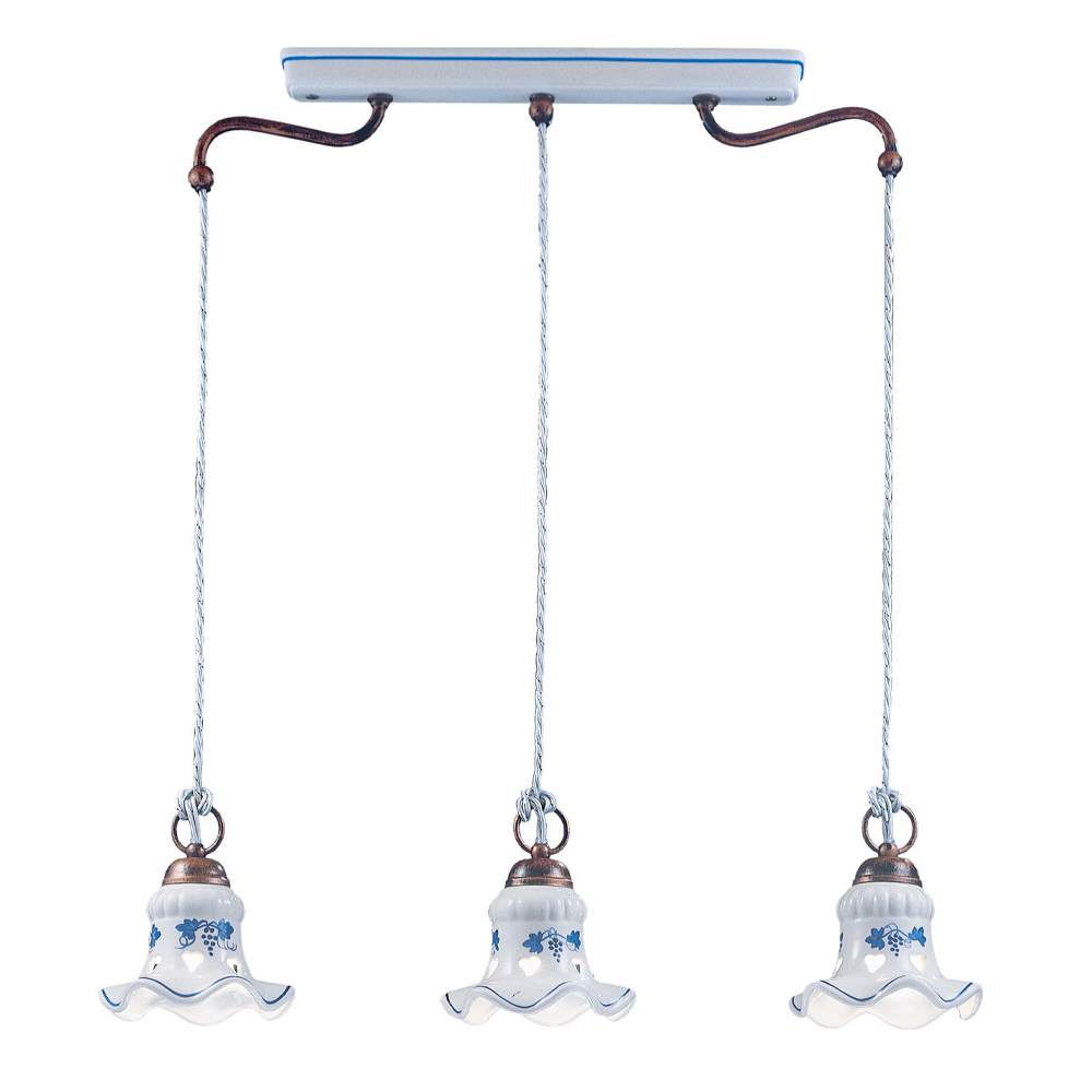 Die 3-flammige Hängelampe besteht vollständig aus Eisen und Keramik mit zarten handgemalten Verzierungen , die die Handwerkskunst und Geschicklichkeit der Handwerker unterstreichen.