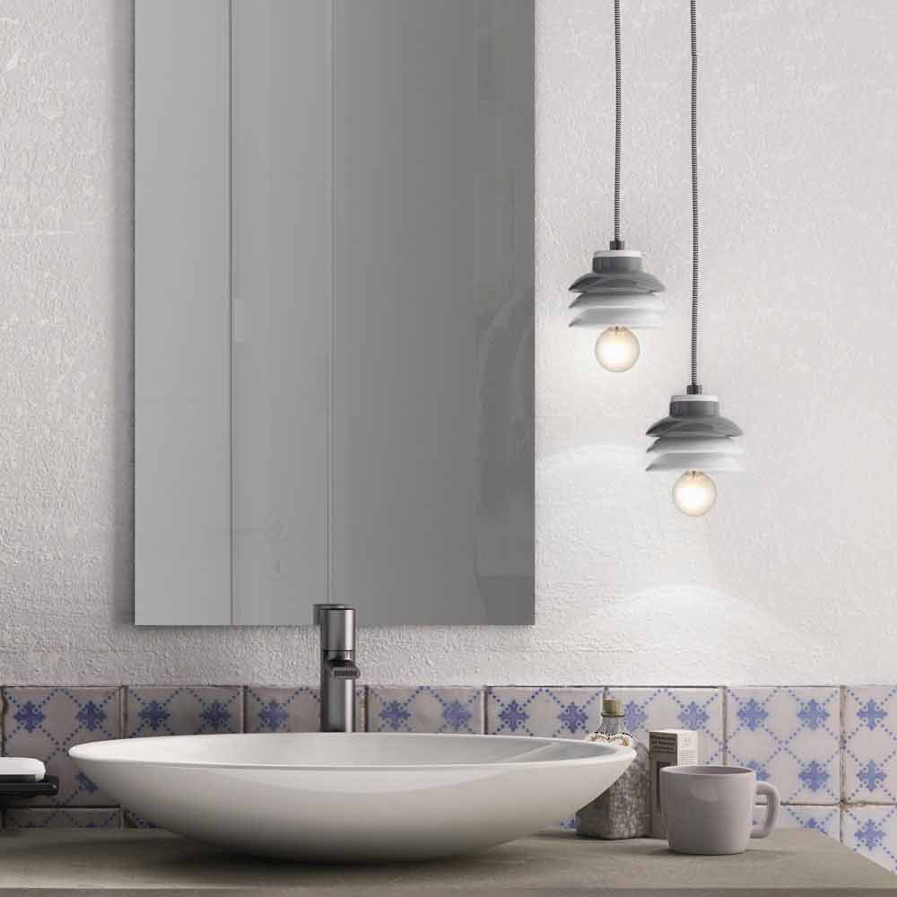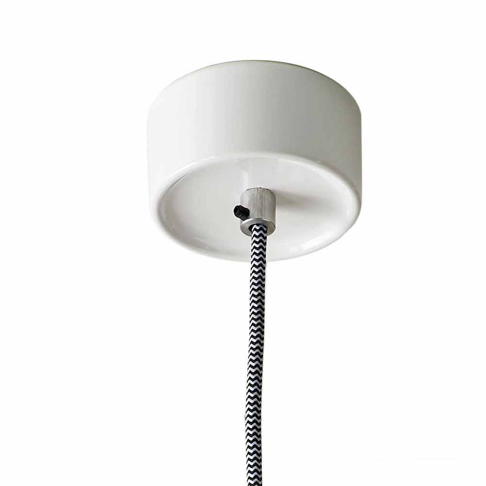 Hergestellt in Italien von Handwerksmeistern aus weißer und grauer Keramik, mit schwarz-weißem Tuchkabel und der Aluminiumkabelklemme.