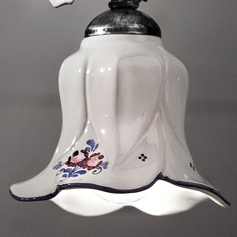 Pendelleuchte aus Metall und handverzierter Keramik mit Rose - Pisa