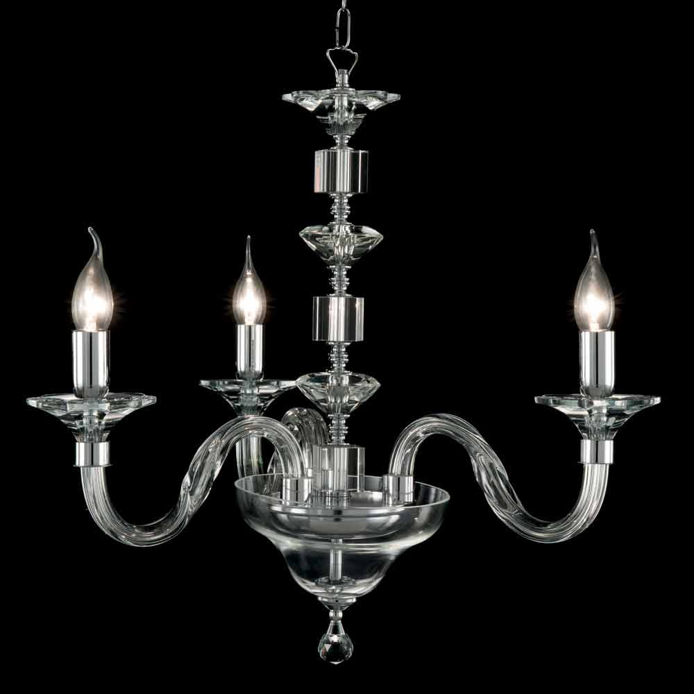3-flammige Pendelleuchte aus Glas und Kristall Ivy, hergestellt in Italien Handgefertigter Kronleuchter aus transparentem Glas mit Kristallverzierungen. Verchromte Oberflächen. Leuchtmittel: 3 x E14 40W Leuchtmittel nicht im Lieferumfang enthalten.