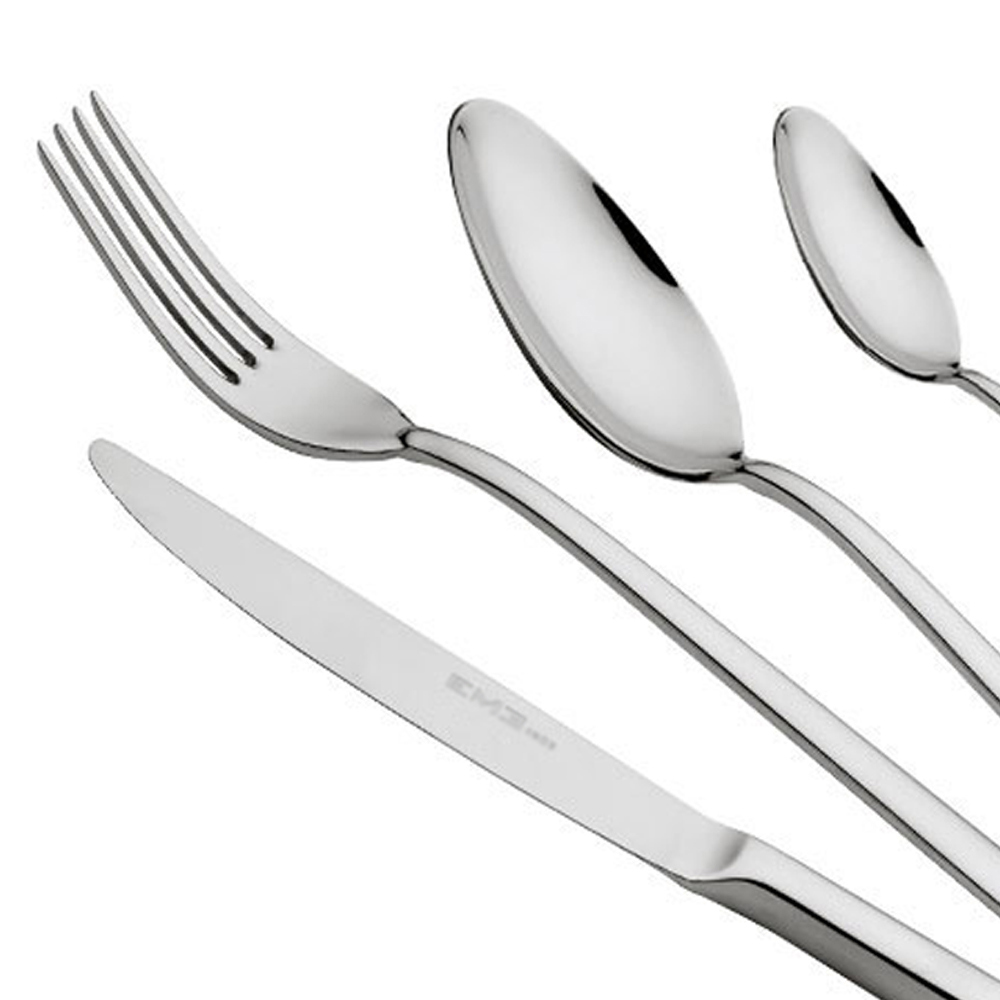 Besteckset aus poliertem Edelstahl, modernes und raffiniertes Design, 24-teilig made in Italy.