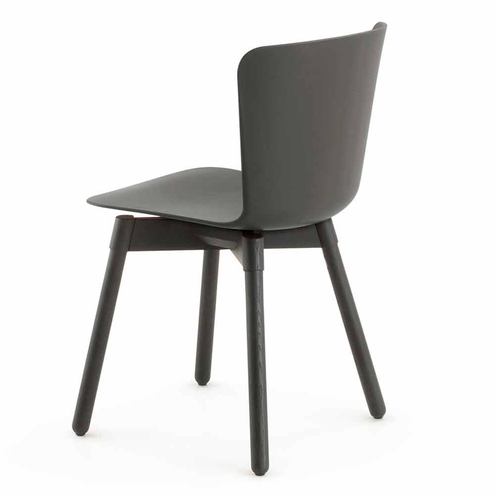Innovativer Stuhl für Esszimmer oder Küche made in Italy mit Sitz und Rückenlehne aus Polypropylen und Struktur aus schwarz gebeizter Eiche .