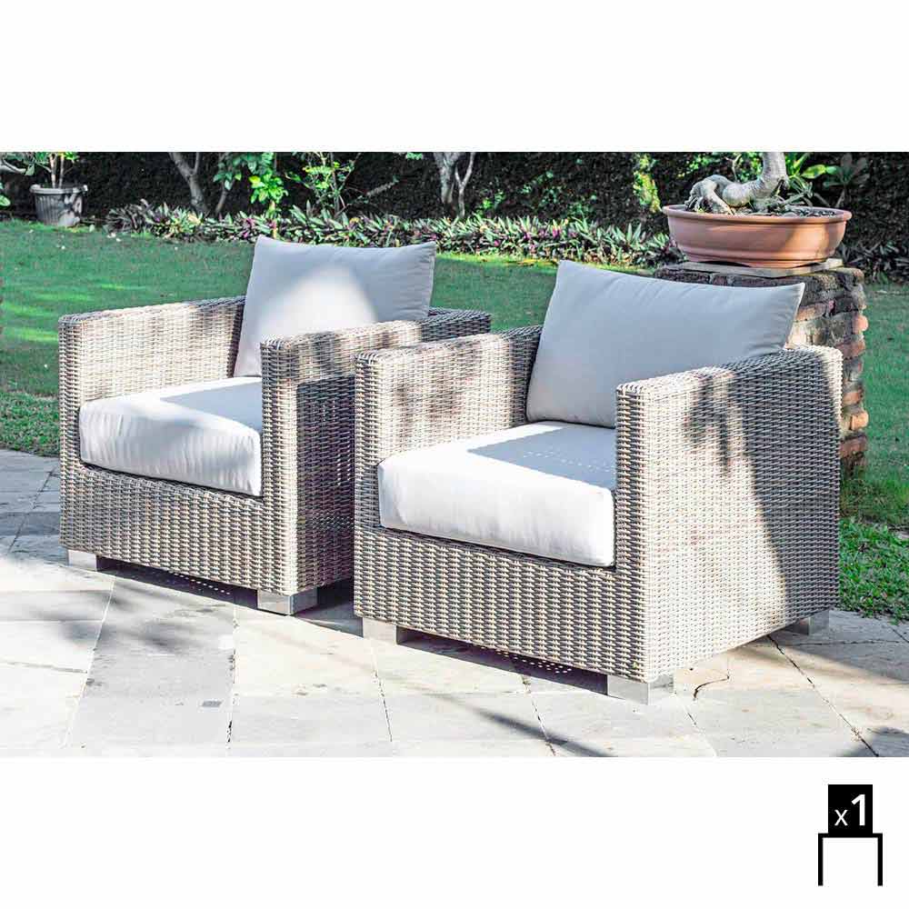 Elsa ist ein komfortabler und optisch wunderschöner Loungesessel, der von ausgebildeten Fachleuten handgefertigt hergestellt wurde. MIt seinem stabilen Alurahmen und die von Hand geflechtetete Oberfläche verleihen dem Loungesessel einen zeitgemäßen Touch und bietet mit einer PUR Schaumpolsterung eine exzellente Sitzgelegenheit. Die Oberflächenveredelung des Polyrattan Geflechtes aus 6 mm Durchmesser ist in der Farbe taubengrau erhältlich.