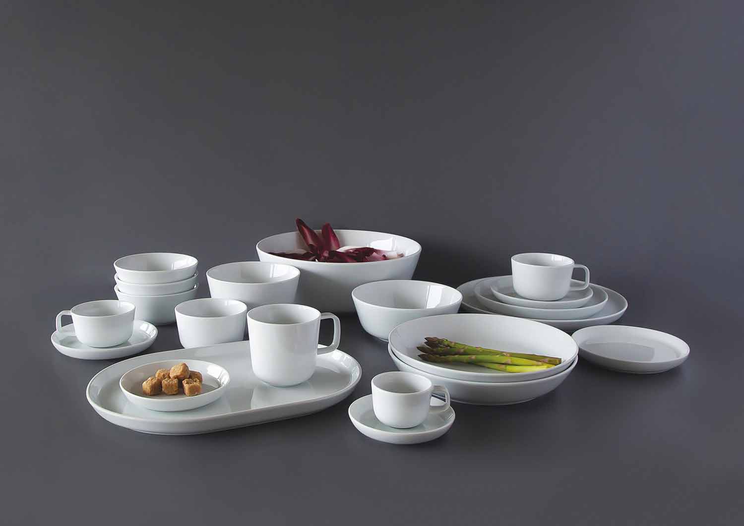 skandinavischen Designs und der Landschaft . Die Form ist eine perfekte und ausgewogene Synthese zwischen einem Coupé-Teller und einem traditionellen Teller mit Rand: Tatsächlich hat er ein