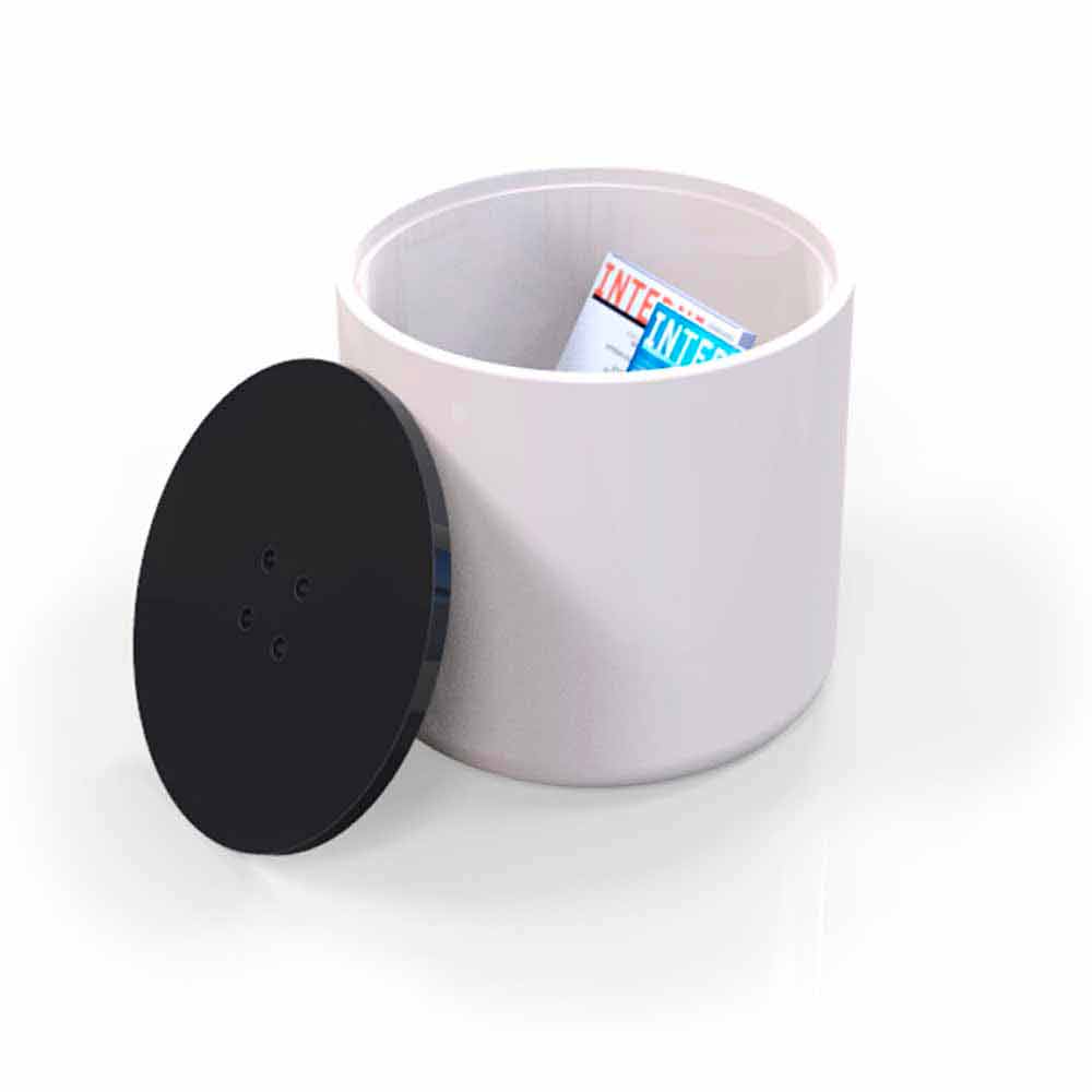 Button ist eine ausgezeichnete platzsparende Lösung, da er über ein praktisches Innenfach verfügt, das durch Entfernen des knopfförmigen Deckels zugänglich ist.