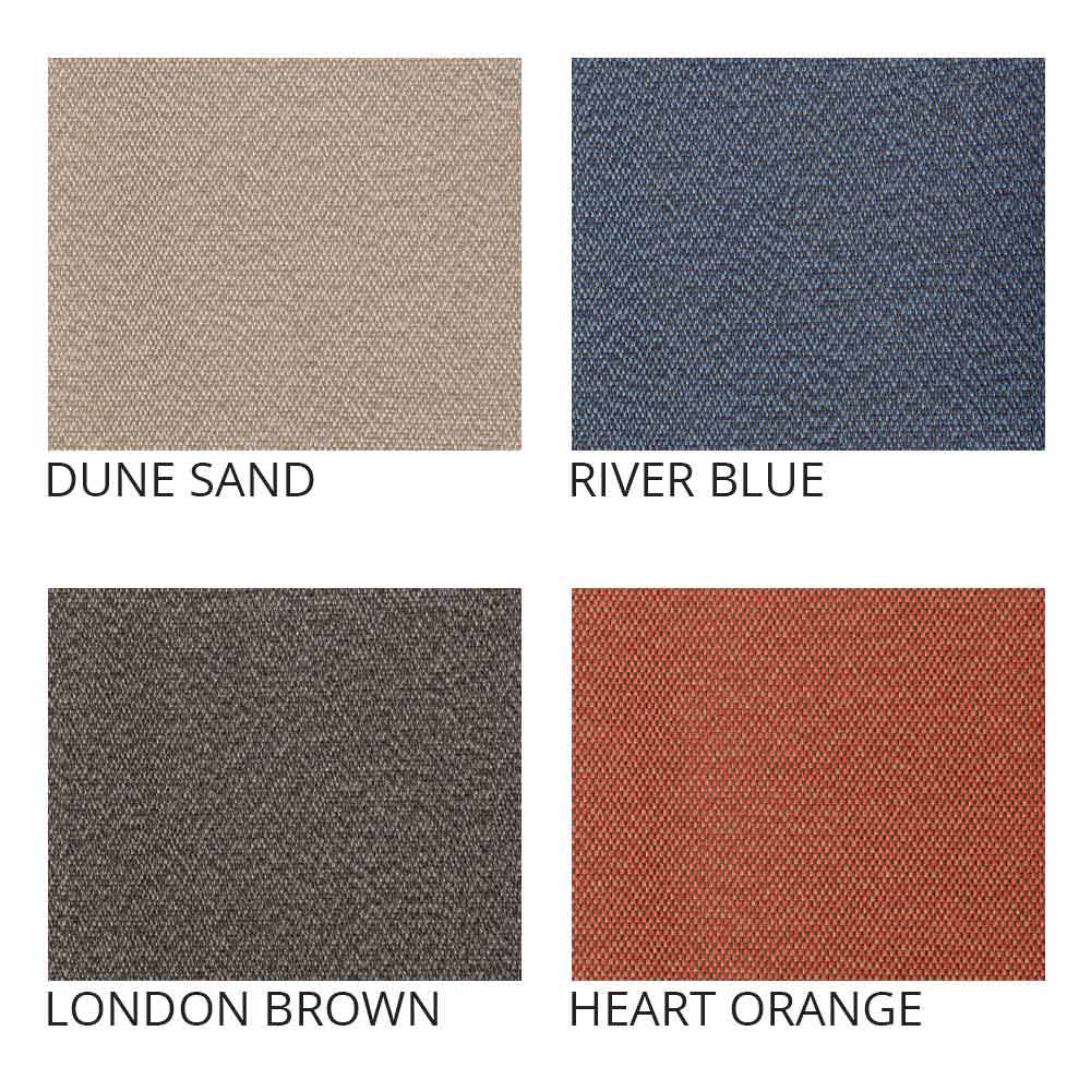- taubengraue Struktur und Sand / orange Erde / braunes London / blaue Flusskissen;