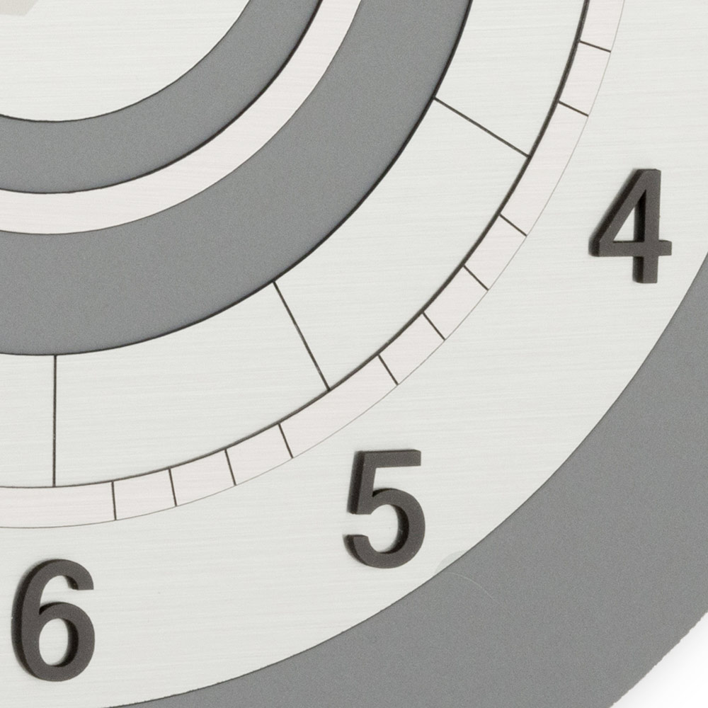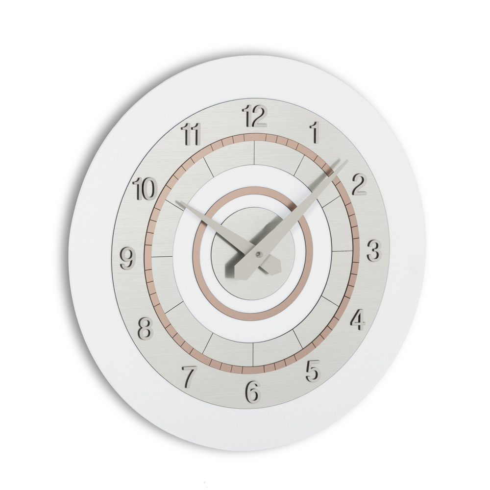 Eine perfekte Mischung aus Grafischem Design und Funktionalität, diese Wanduhr aus High-Density Semi-Expansized PVC è ein echter Blickfang für alle, die gerne mit Persönlichkeit dekorieren. Das Zusammenspiel der konzentrischen Kreise erzeugt einen hypnotischen und dynamischen visuellen Effekt, der sofort die Aufmerksamkeit des Betrachters fesselt und die Wand in ein wahres Kunstwerk verwandelt.