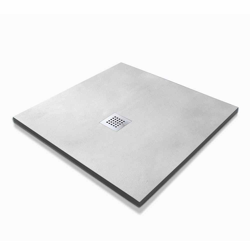 Moderne quadratische Duschwanne 90x90 aus Harz mit Betonoptik.
