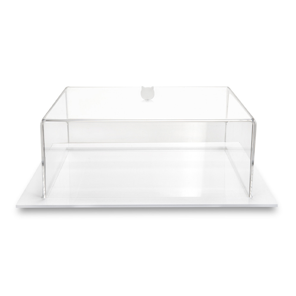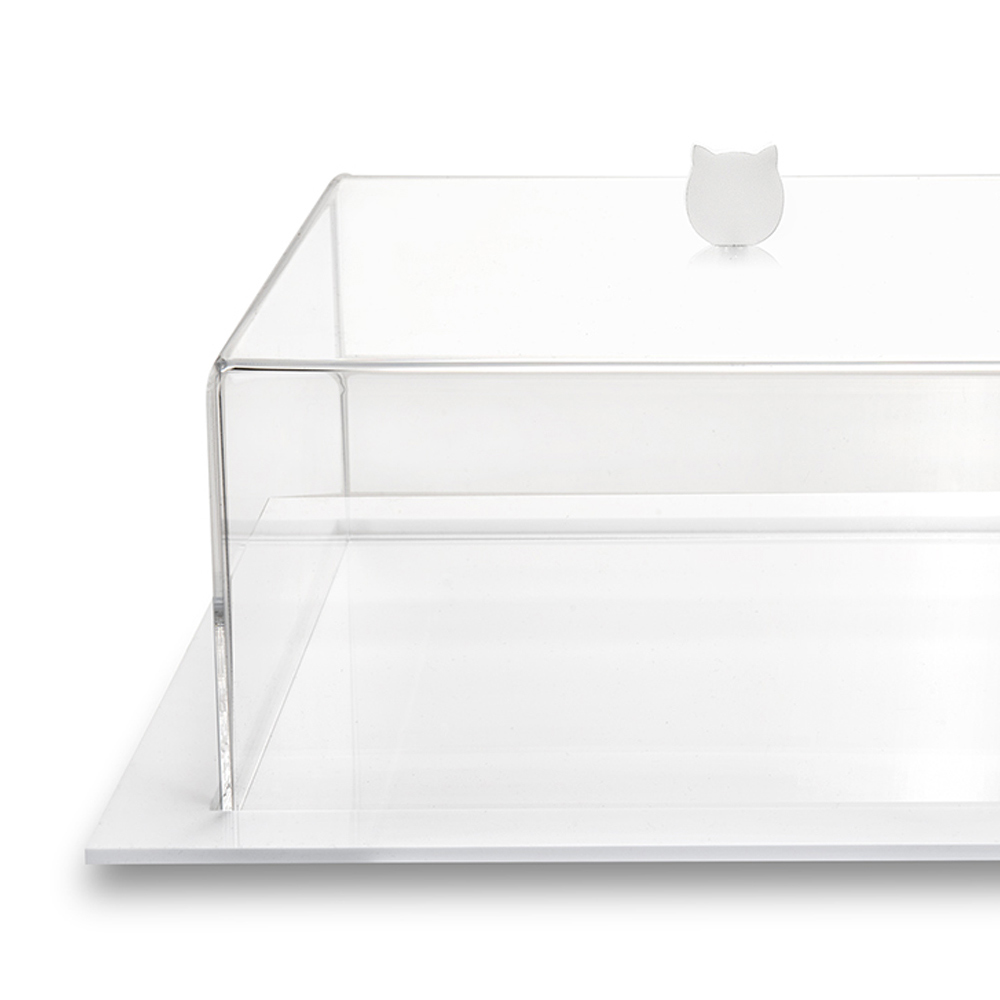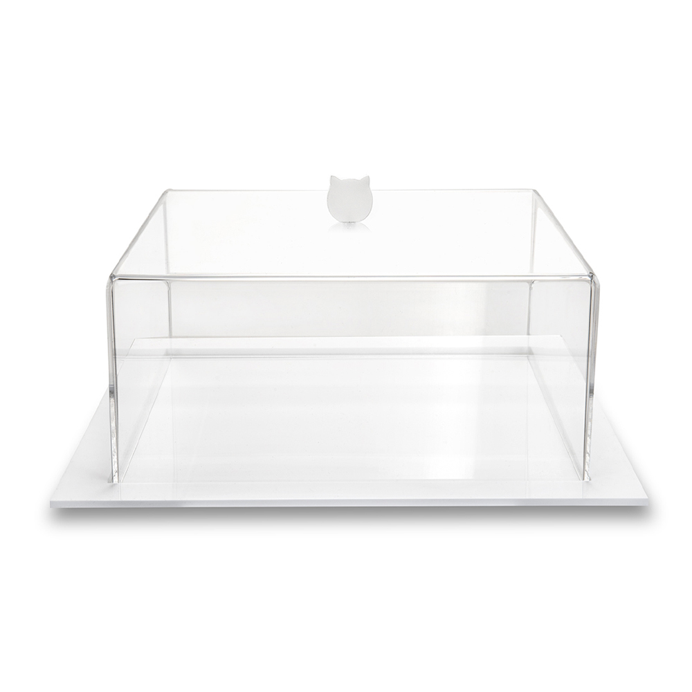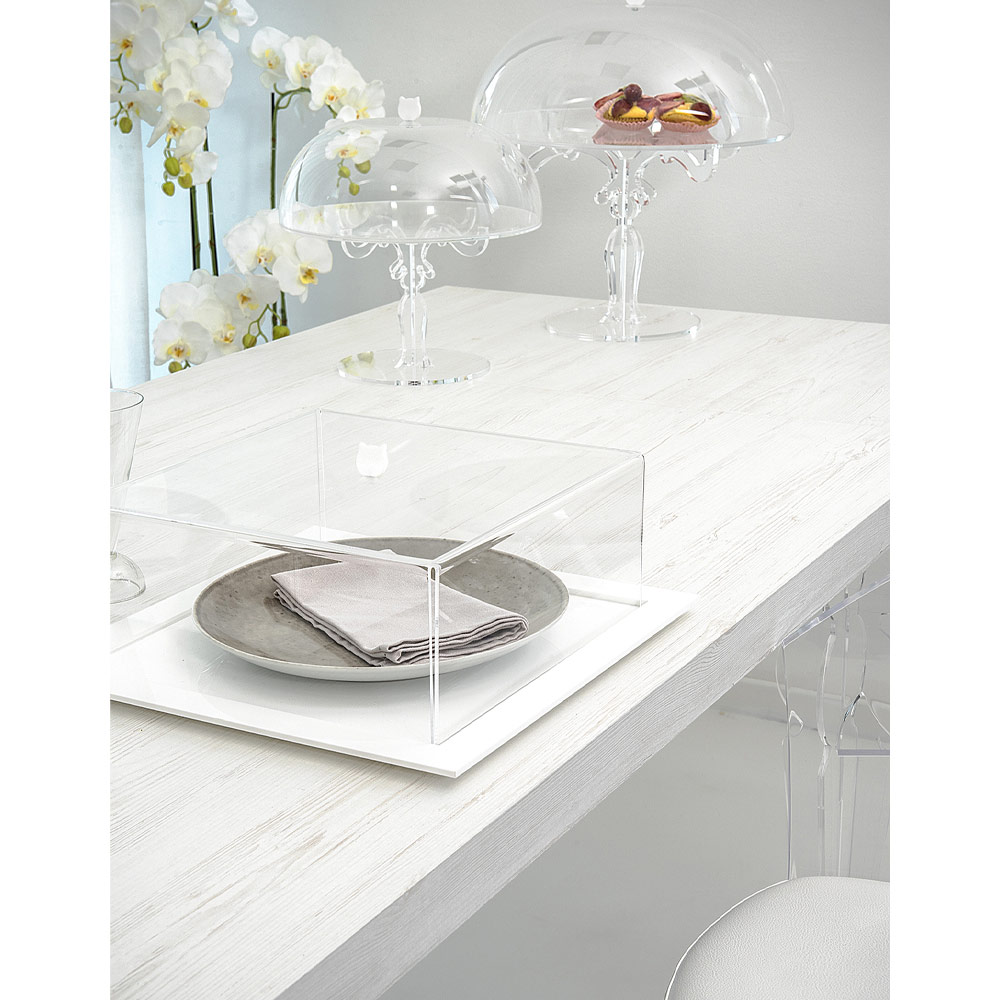 Diese quadratische Kuchenform ist ein originelles Stück aus reinem, reinem Polymer, 100% PMMA-Plexiglas für ein widerstandsfähiges, elegantes und raffiniertes Design.